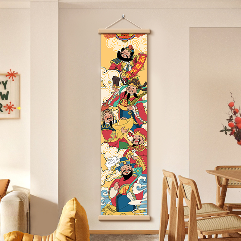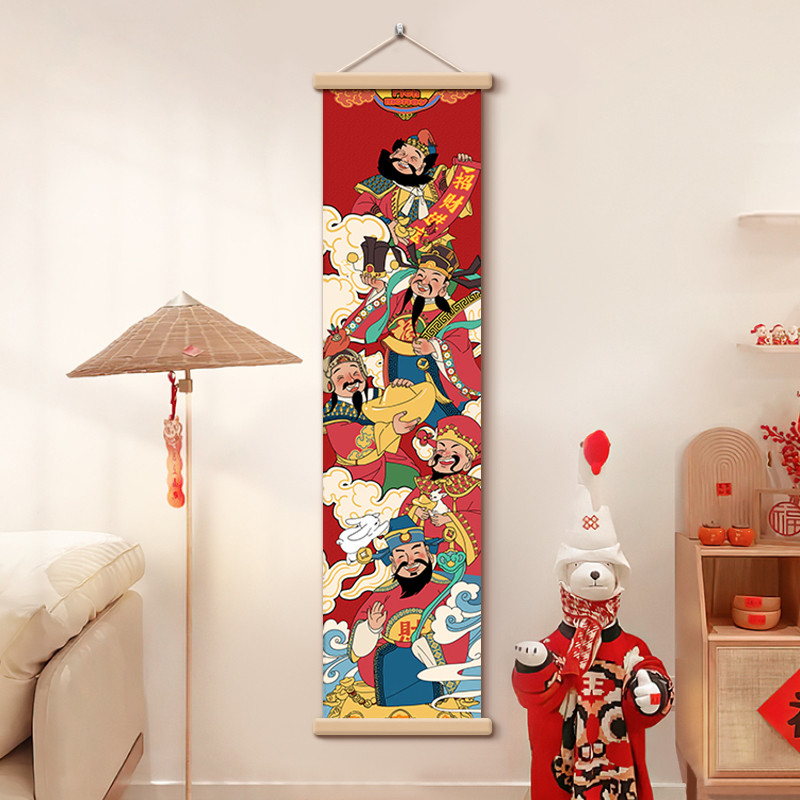 五路财神客厅装饰画财神爷寓意好电视背景墙挂轴挂画入户玄关壁画