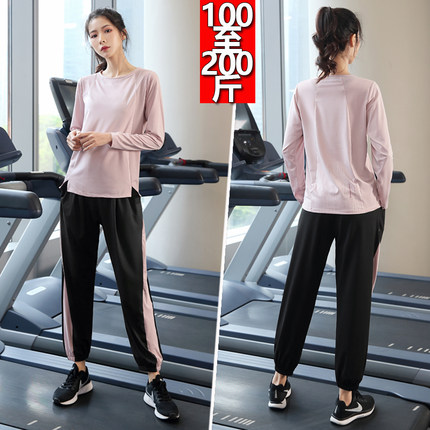 胖MM加肥加大码200斤运动套装女春秋款健身房瑜伽服长袖速干晨跑
