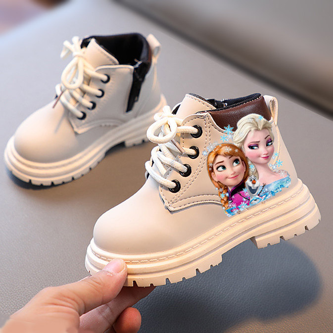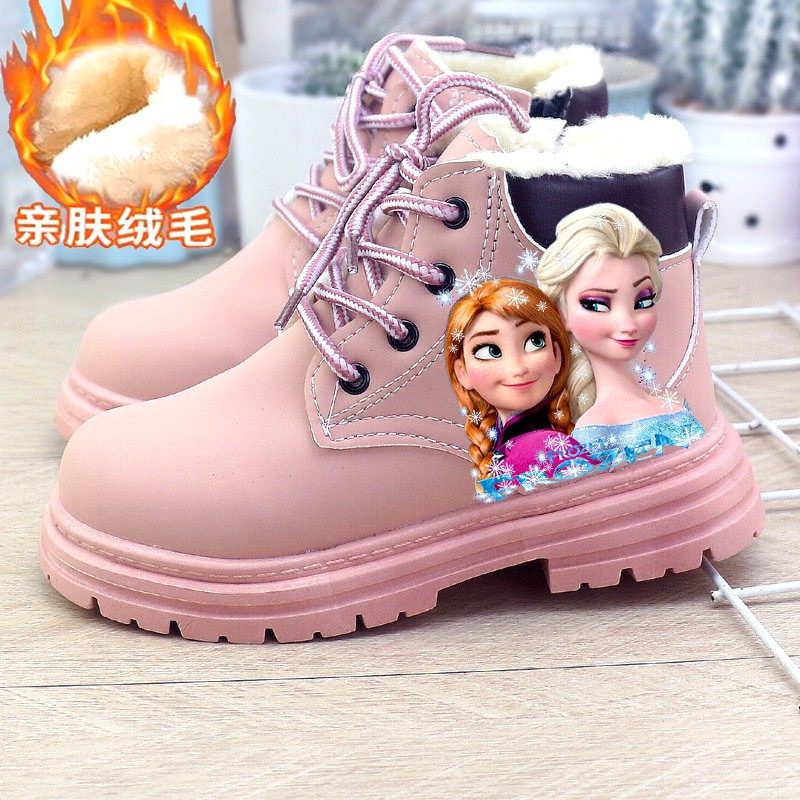 秋冬洋气单靴低筒马丁靴子女童鞋高帮皮靴粉色学生女公主板鞋防滑