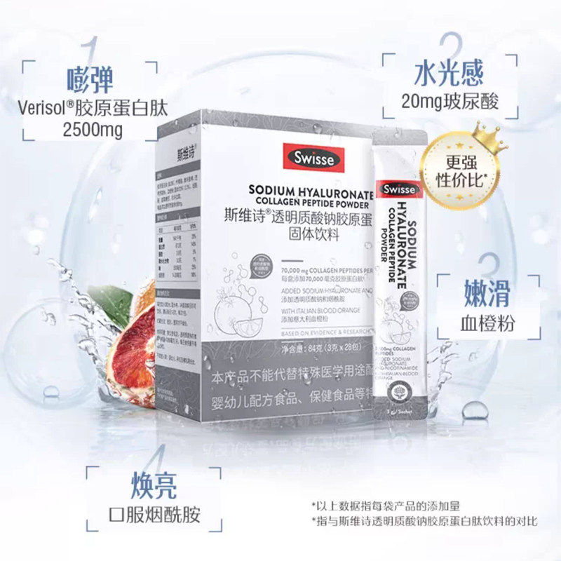 Swisse斯维诗胶原蛋白粉透明质酸钠水光粉胶原蛋白肽含烟酰胺正品