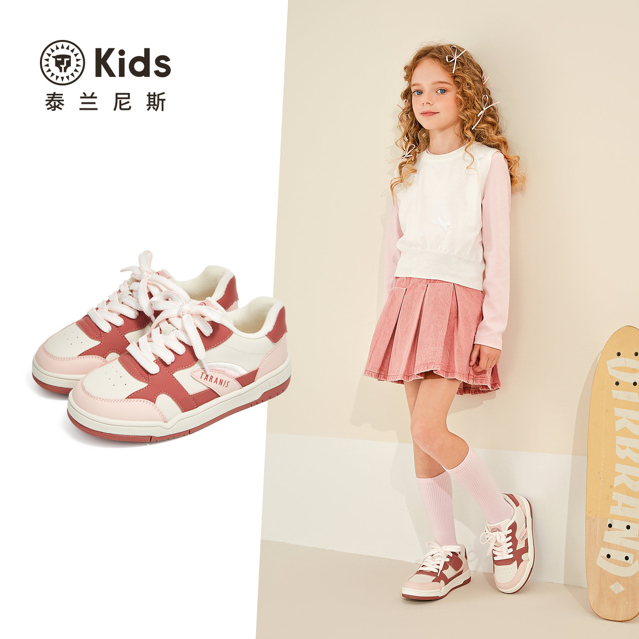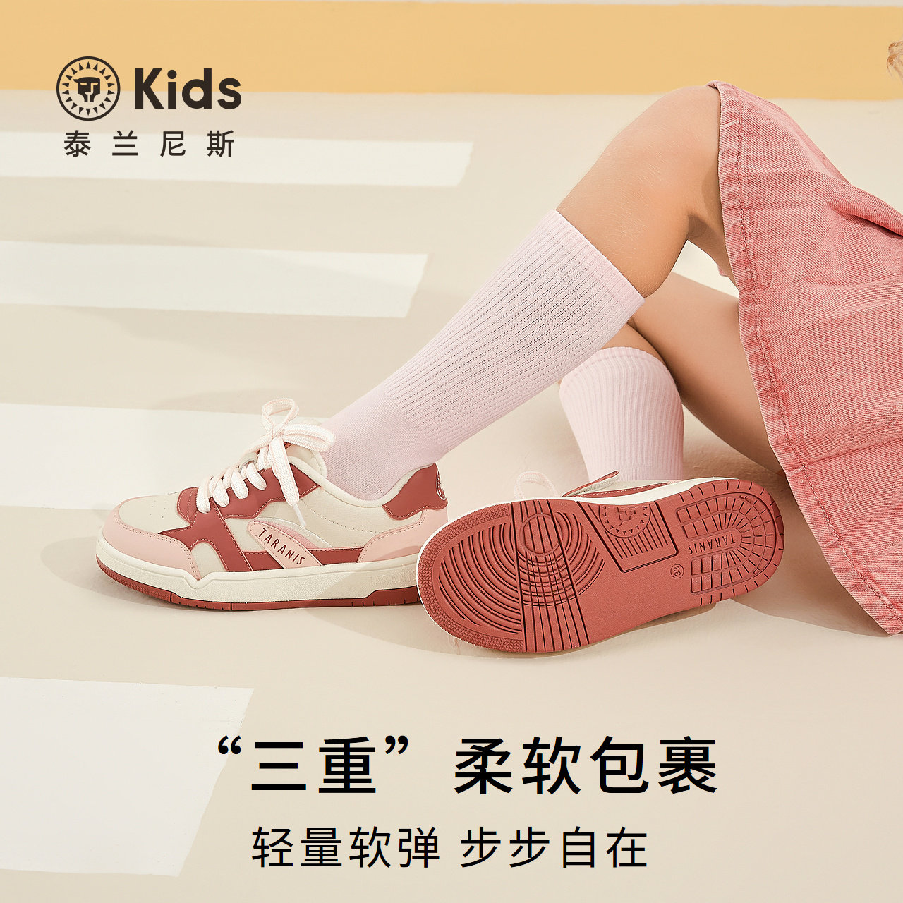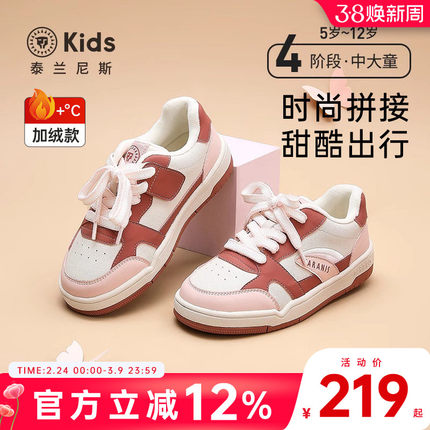 泰兰尼斯kids冬季新款大童鞋舒适加绒保暖儿童鞋防滑耐磨女童板鞋