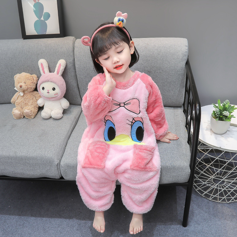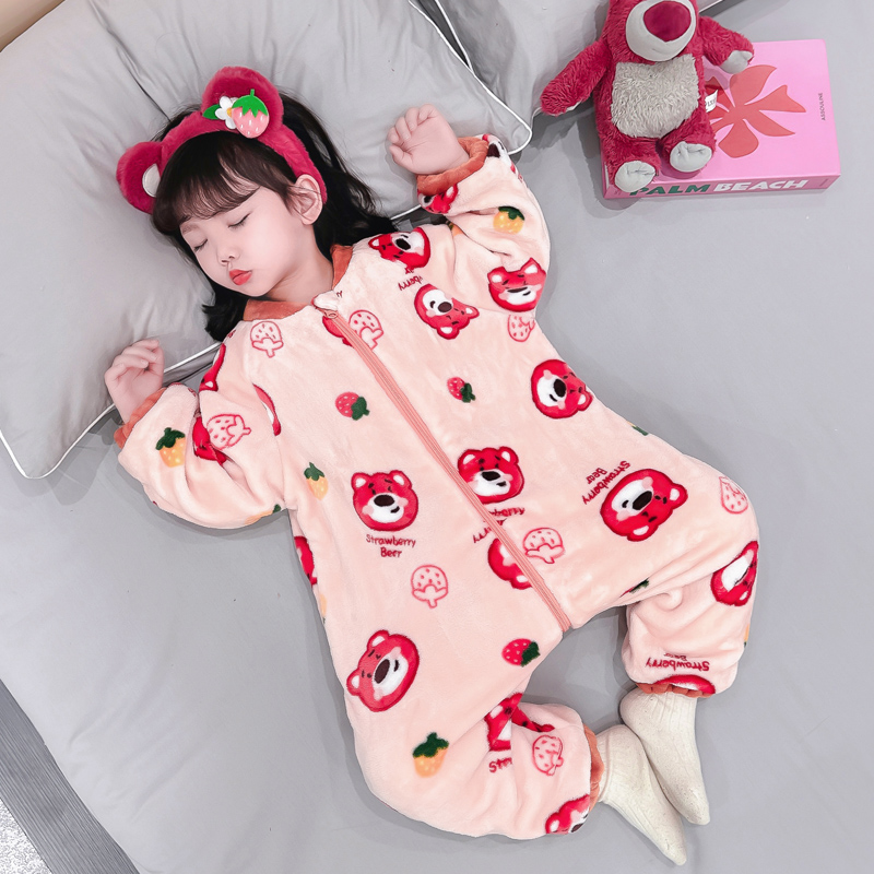 儿童连体睡衣女宝宝法兰绒秋冬款女童加厚珊瑚绒婴儿防踢被睡袋