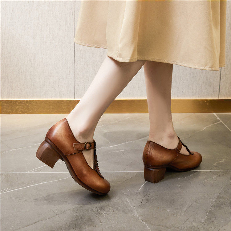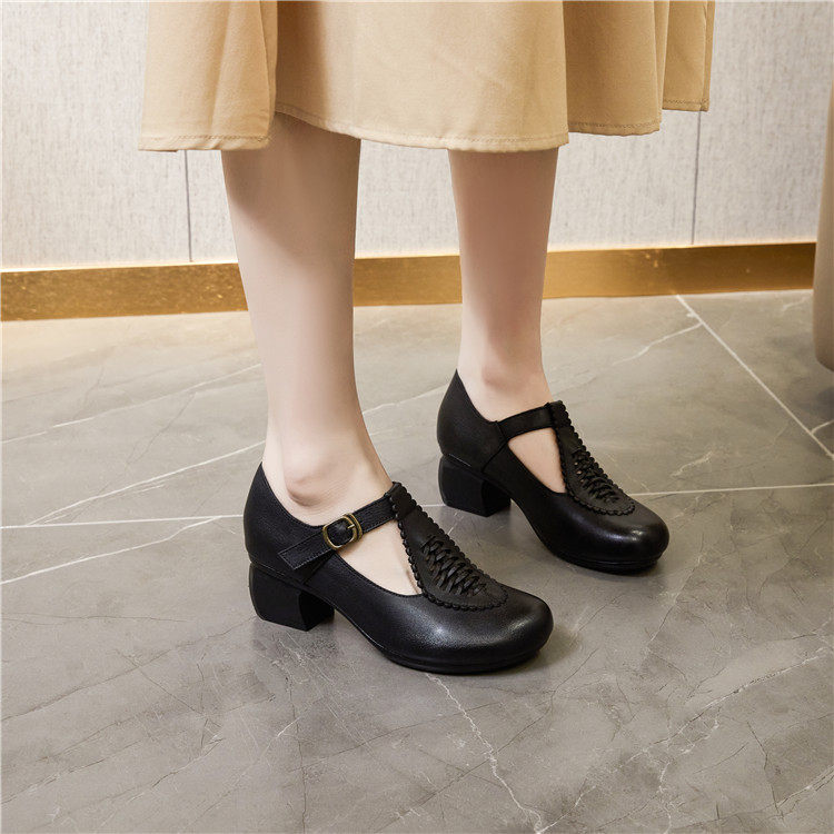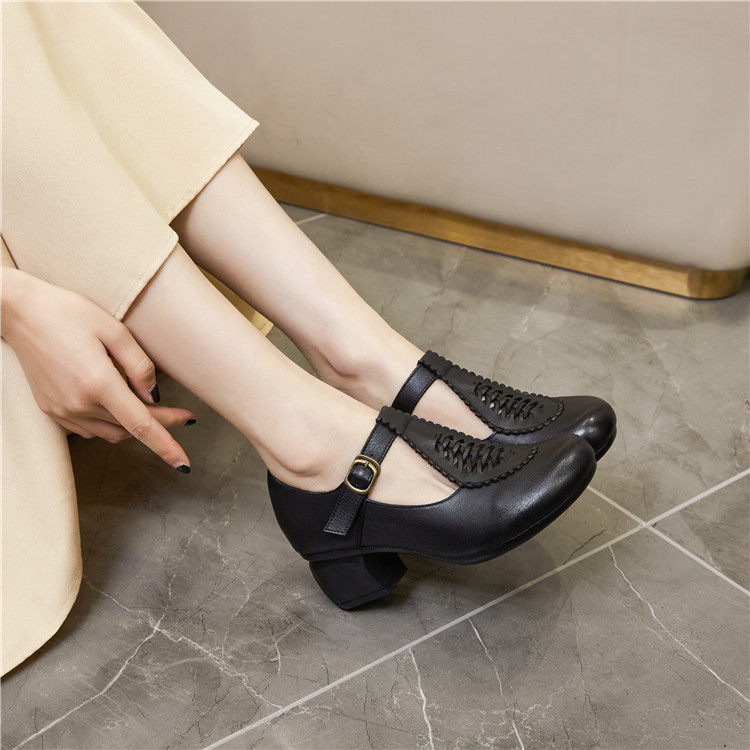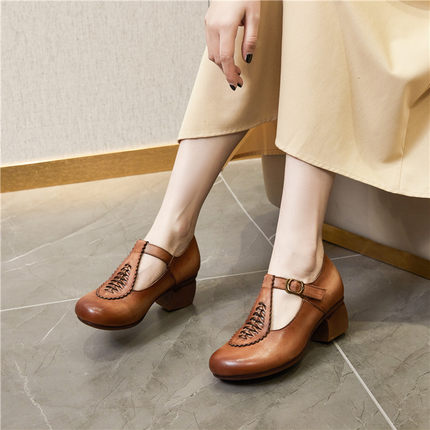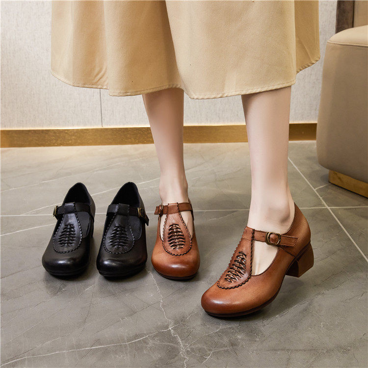 002中跟丁字单鞋民族风手工花朵皮鞋气质百搭女鞋夏新款特色复古
