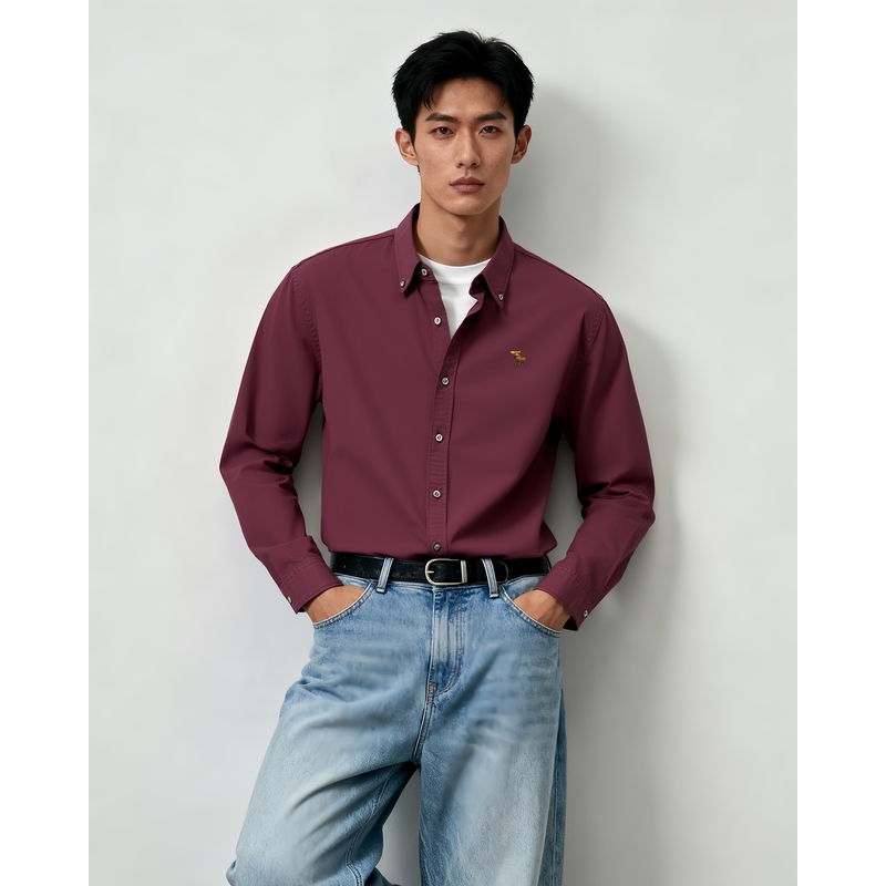 【牛津衬衫】AF小麋鹿图案男装25秋季新款修身长袖衬衫125-5225