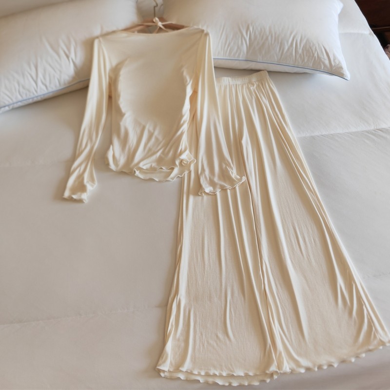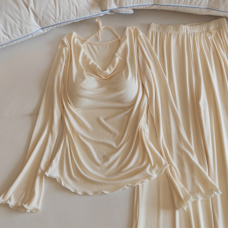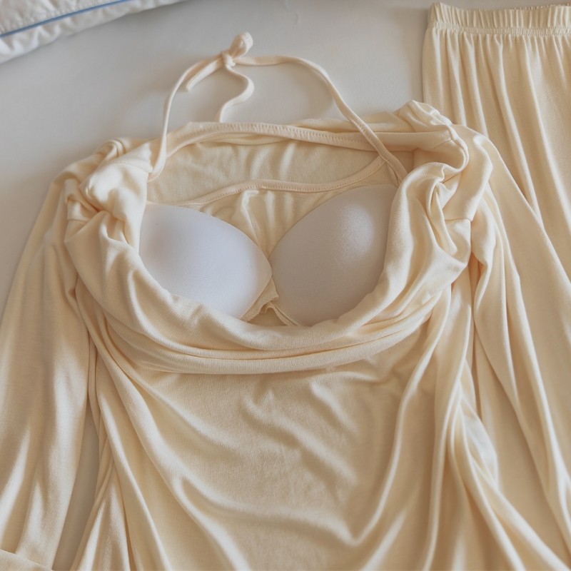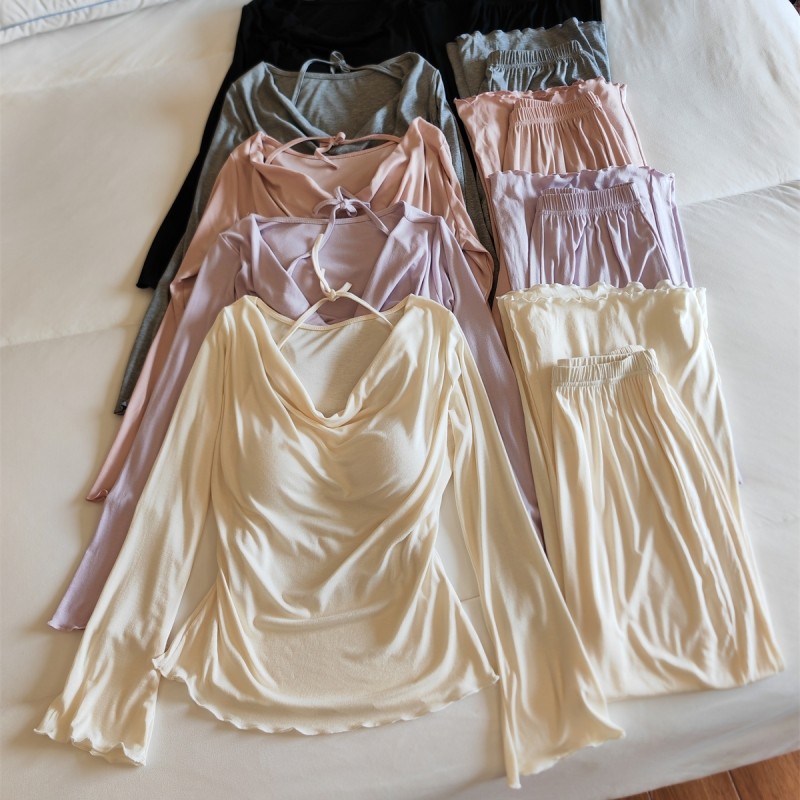 带胸垫睡衣女春秋季长袖长裤两件套法式性感纯欲风莫代尔棉家居服