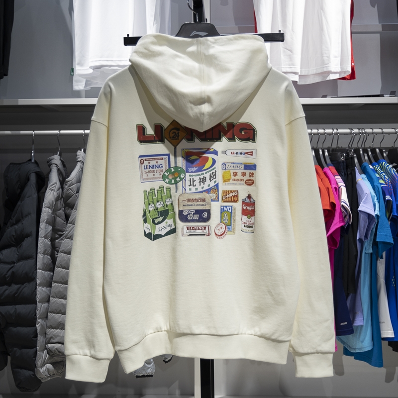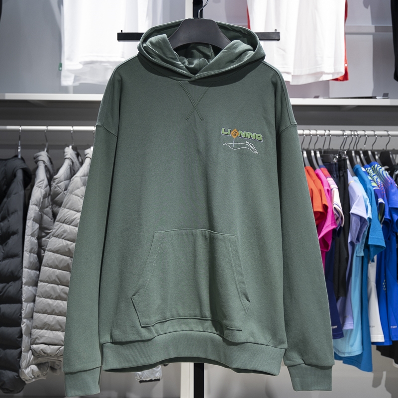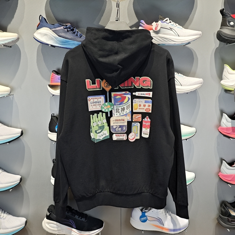 李宁2024春季新款滑板系列男子宽松休闲运动套头连帽卫衣AWDU133