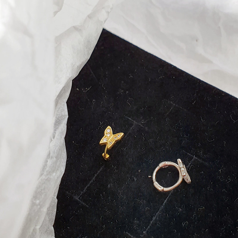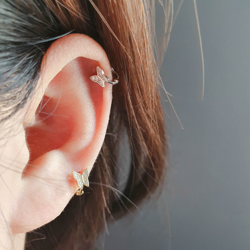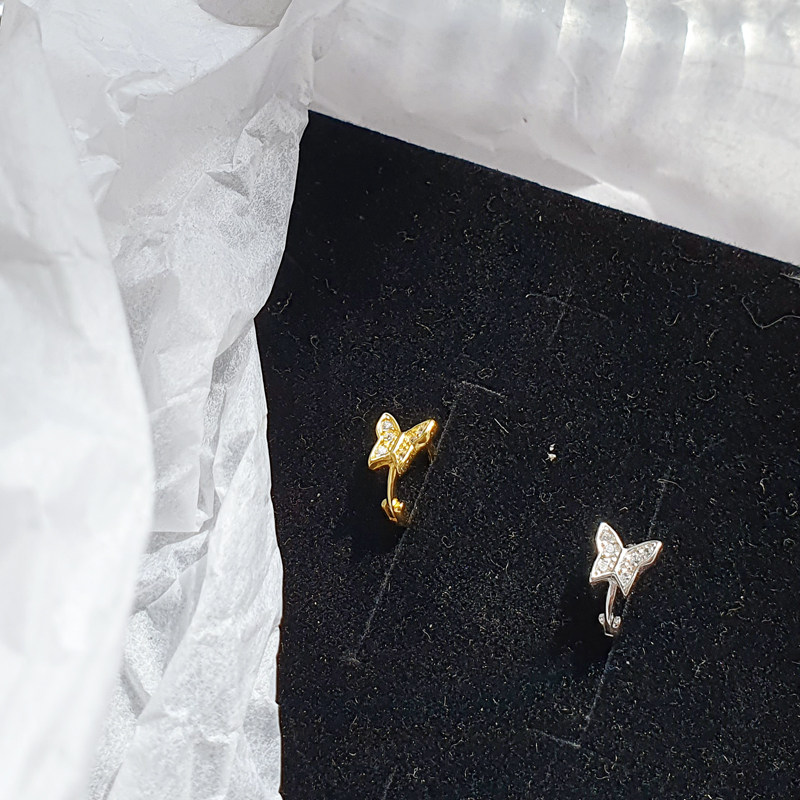 耳扣小耳圈耳骨环日韩蝴蝶银饰软骨耳饰耳环通体925纯银金色银色
