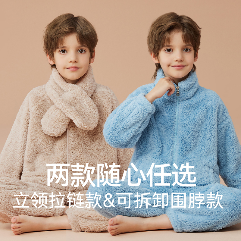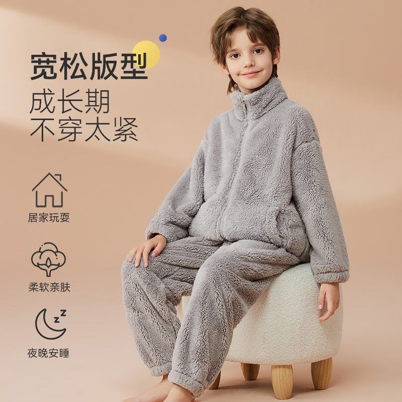 猫人儿童珊瑚绒睡衣男大童法兰绒男孩青少年家居服秋冬季2025新款