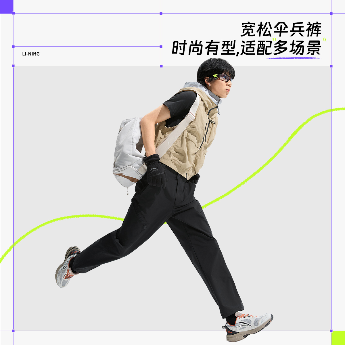 李宁正品男子防泼水运动直筒裤