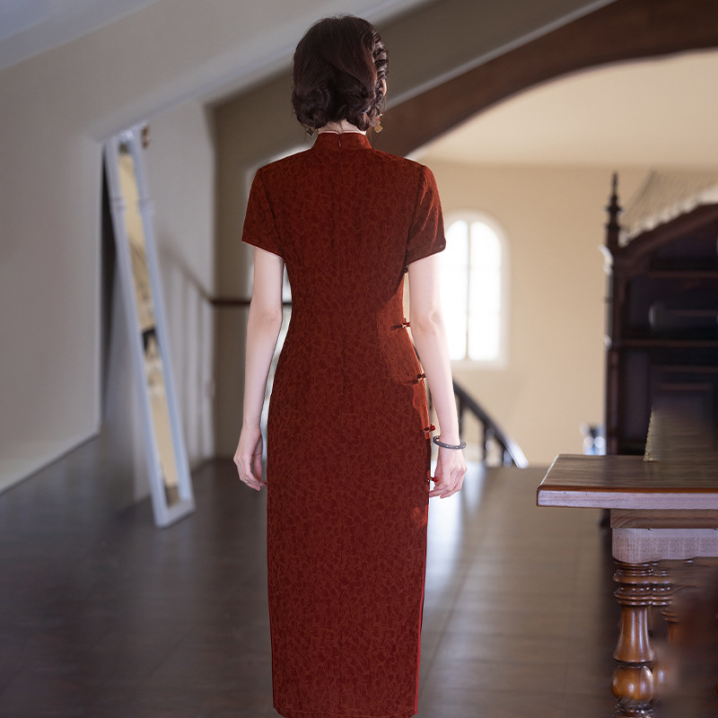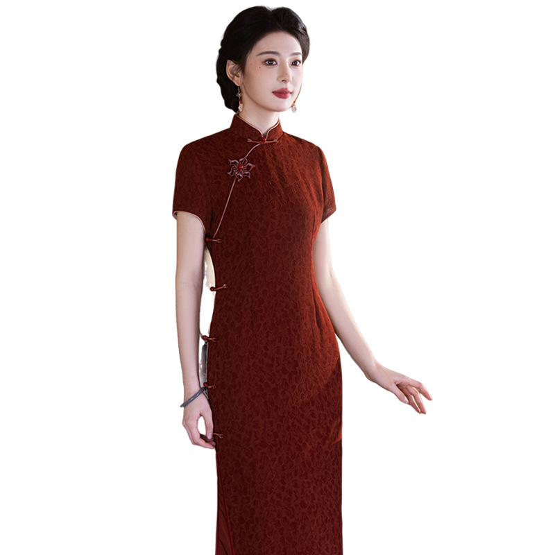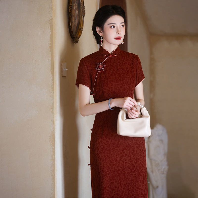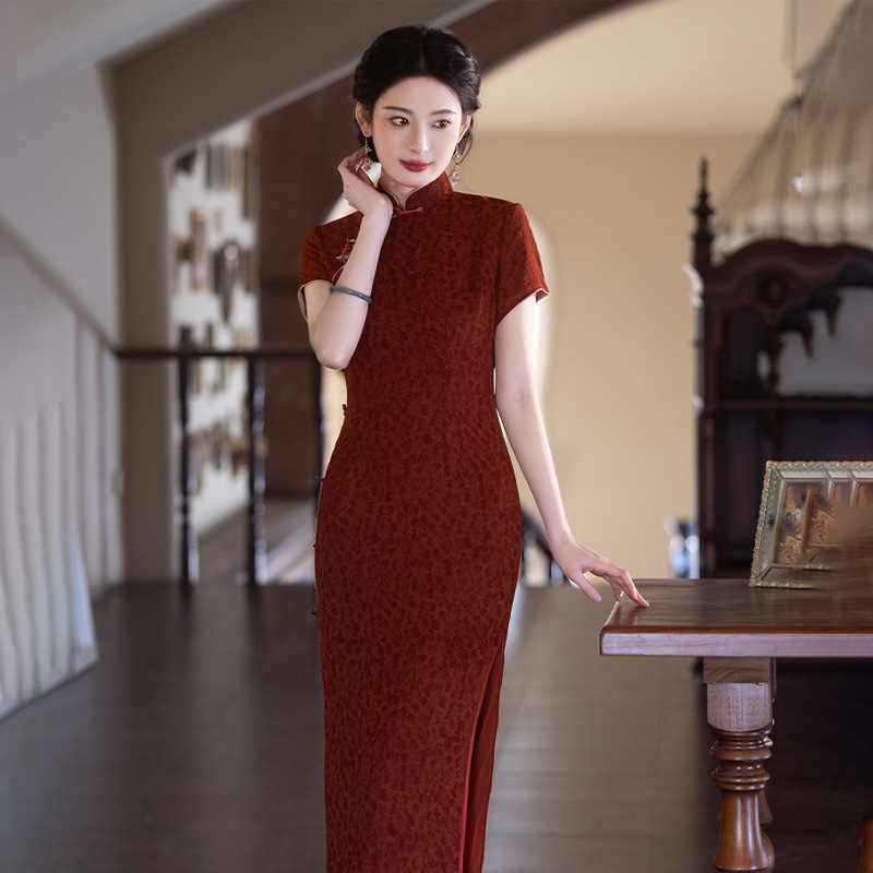 结婚宴会走秀红色旗袍新中式复古修身优雅敬酒服订婚礼服长款衣裙