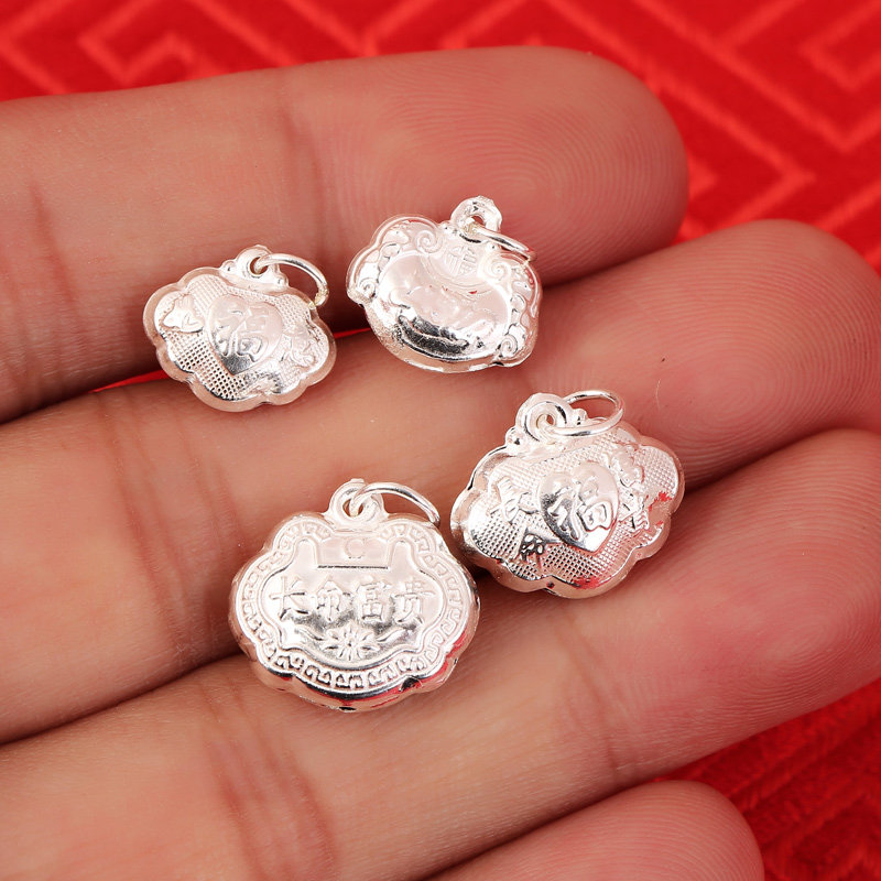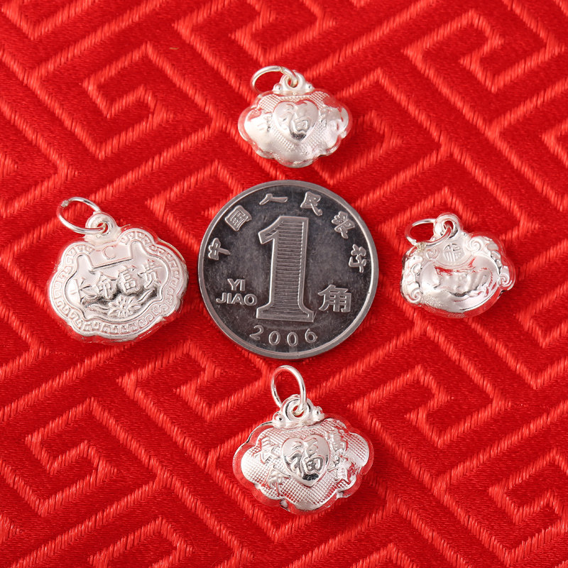 s925纯银长命宝宝小福锁吊坠红绳编织手链项链水晶玛瑙银饰配件