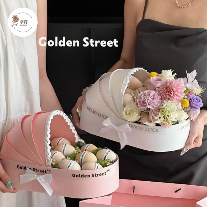 摇篮式水果花艺包装盒百岁宴送产妇月子花店鲜花礼品盒手提空盒