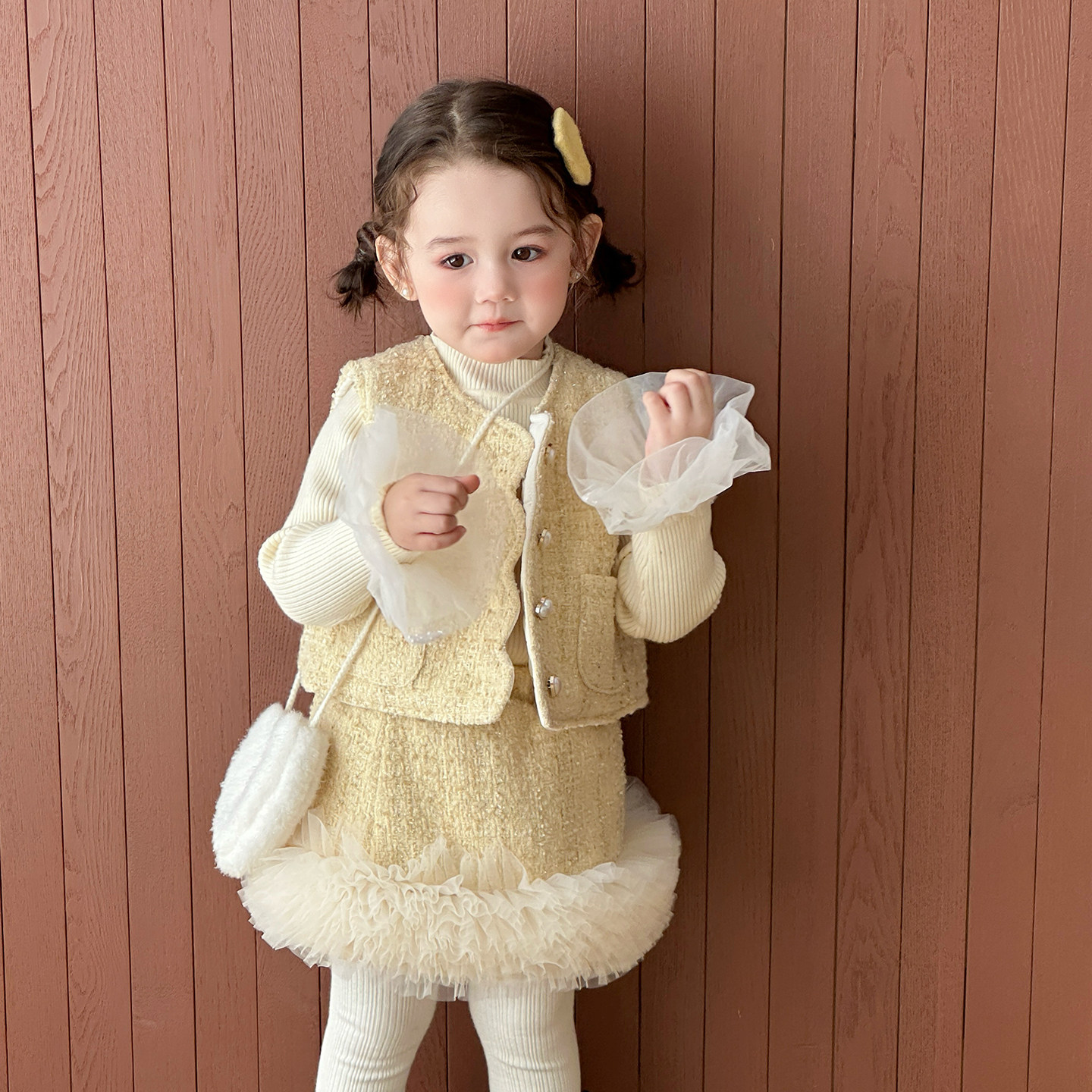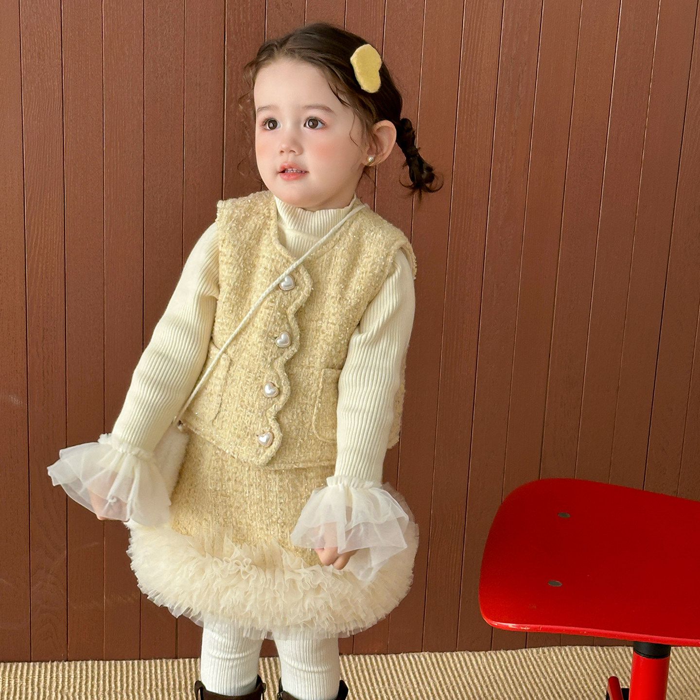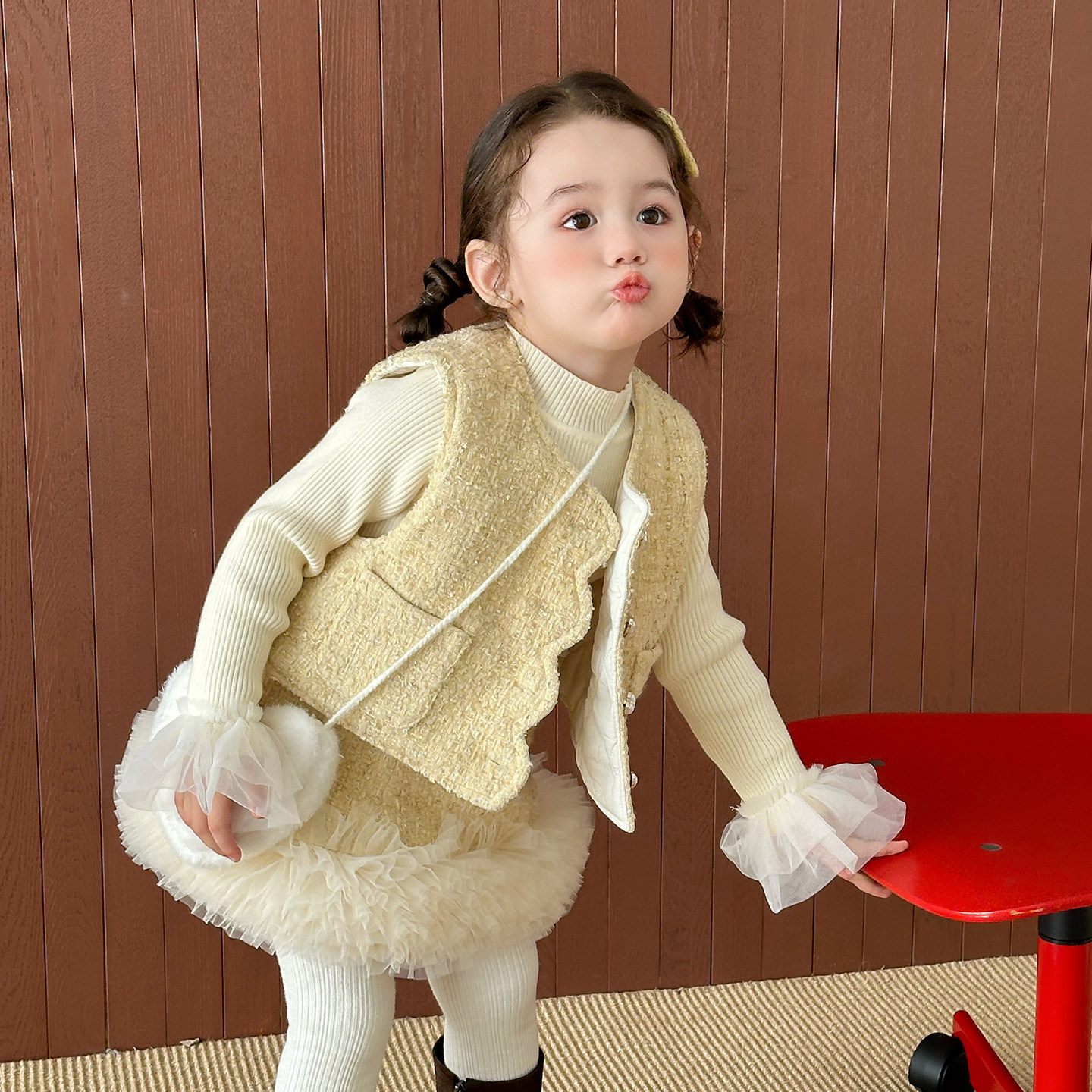 女童加厚洋气小香风毛呢马甲半裙