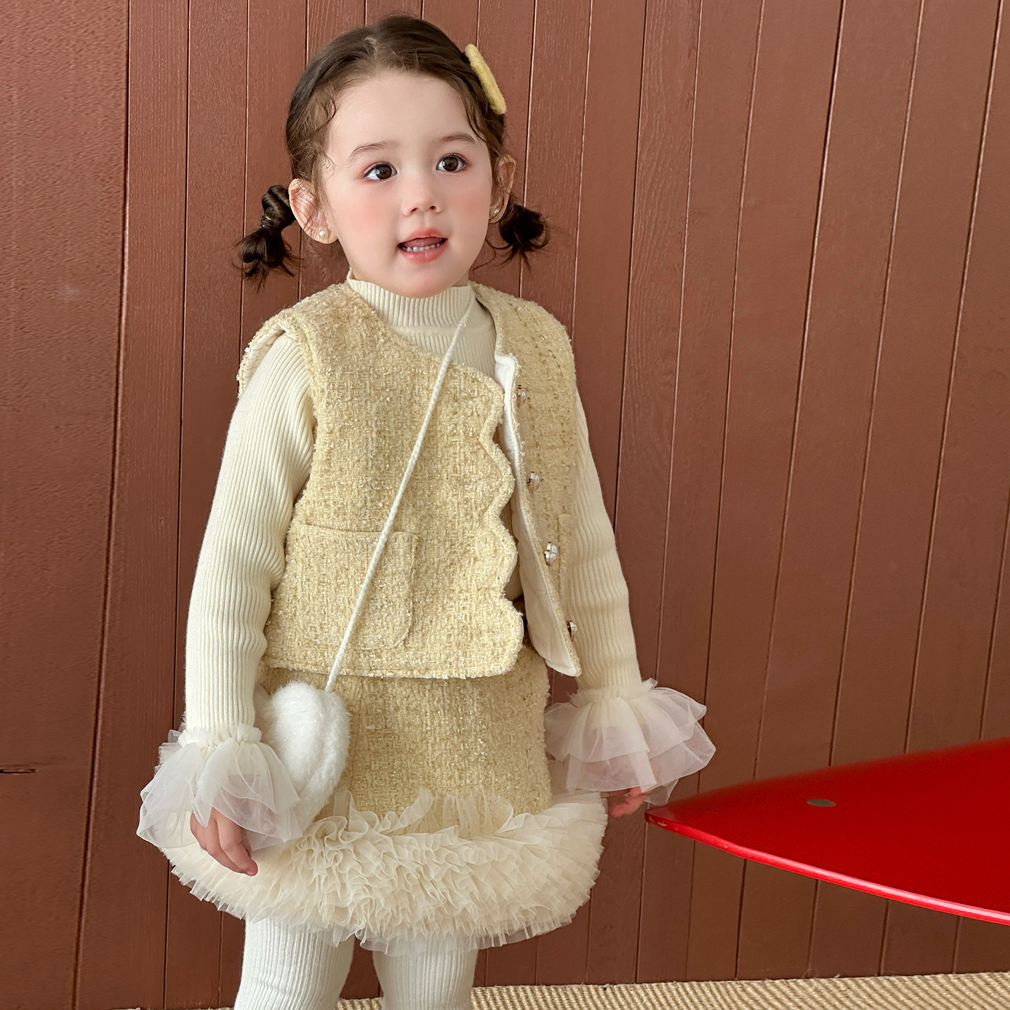 奶油baby女童小香风套装2025秋冬新款女宝宝套裙洋气两件套新年装