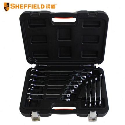 钢盾S017105 11件套全抛光两用加长板手8-22mm铬钒钢双头扳手组套