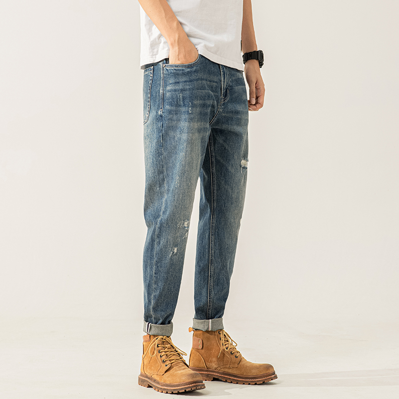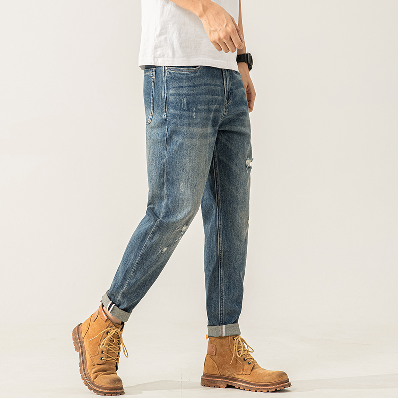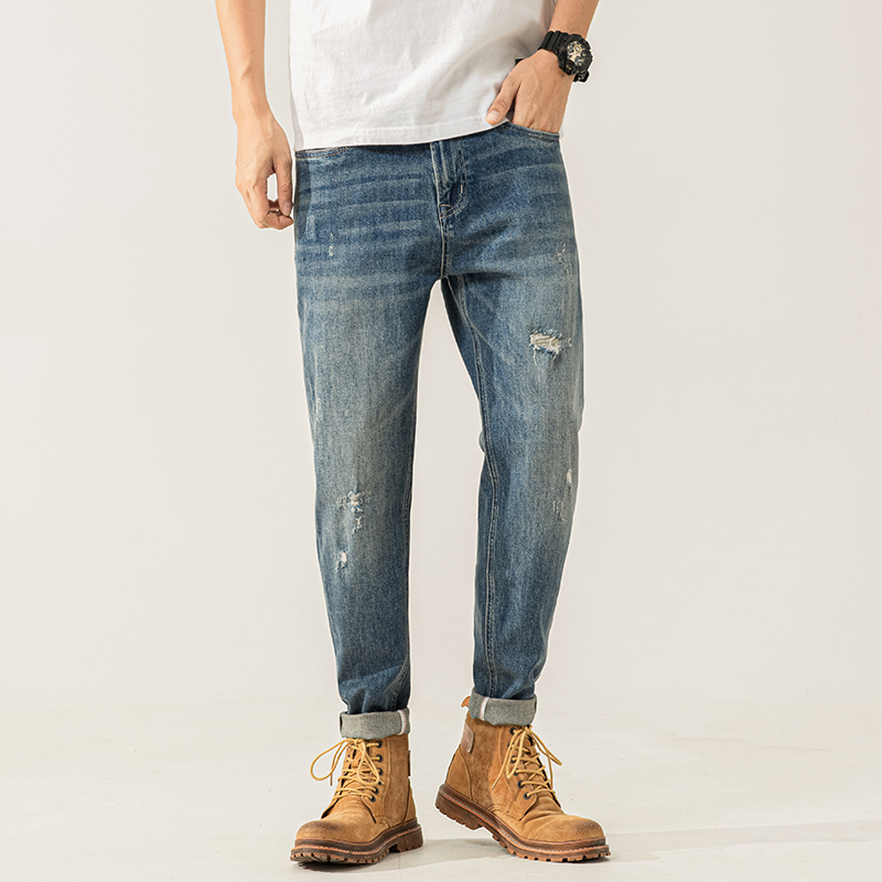 高品质潮流破洞大码显瘦牛仔裤男