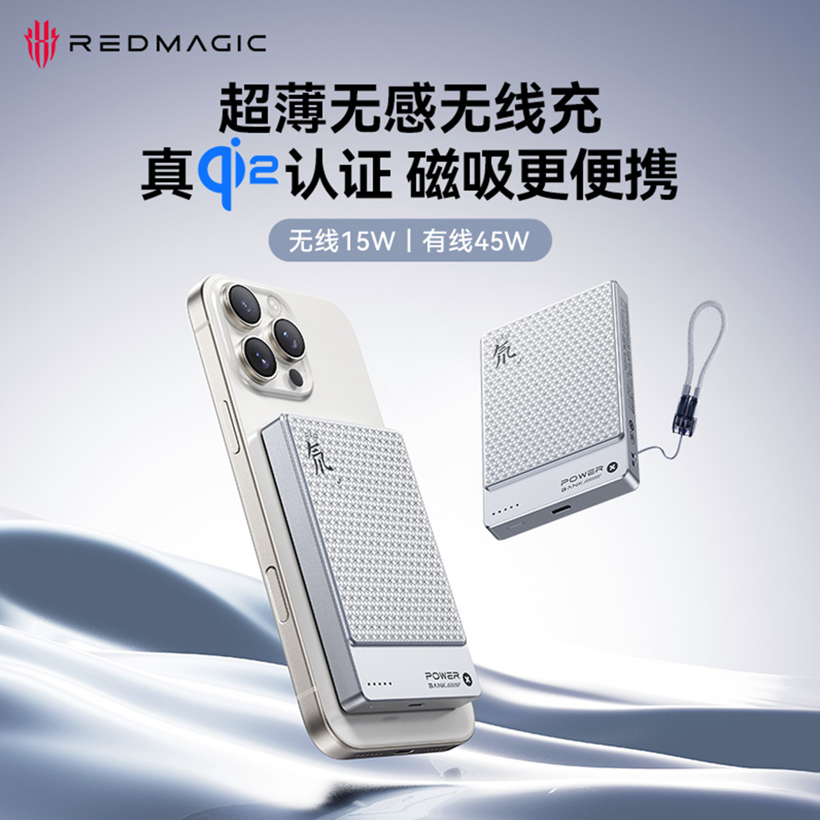 【国家3C认证】努比亚红魔氘锋能量卡磁吸充电宝Qi2认证超薄无线便携新款10000毫安快充移动电源苹果16上飞机