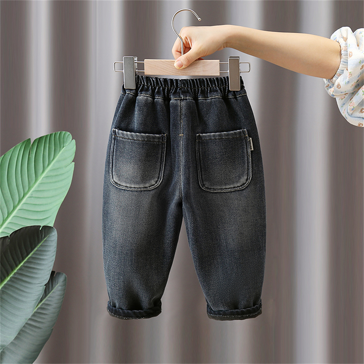 男童加绒裤子秋冬装儿童加厚牛仔裤2025新款男孩宝宝冬季休闲裤潮