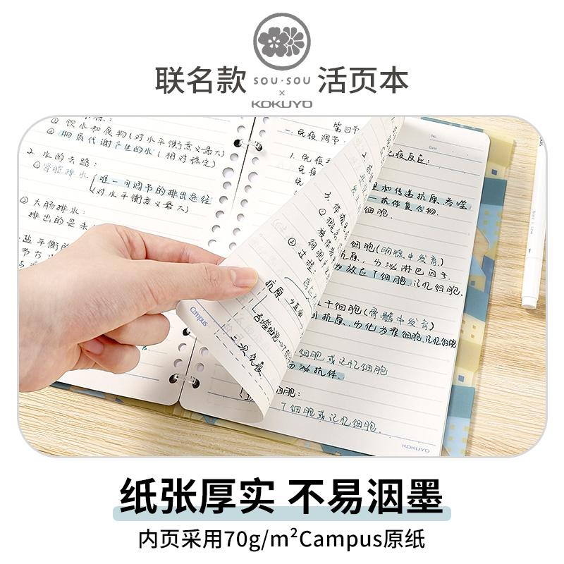 【SOU·SOU】新品日本国誉kokuyo活页本B5联名笔记本Campus原纸A5高颜值记事本学生用横线本4孔不易硌手