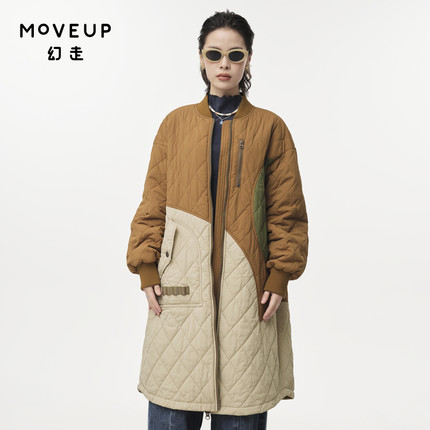 MOVEUP幻走2024秋季新款.FUN系列撞色拼接棒球领长款棉服外套女冬