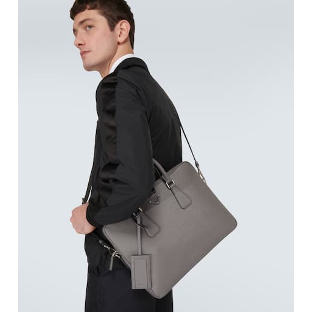 潮奢 Prada 普拉达 男士 小牛皮公文包 grey灰色 舒适时尚