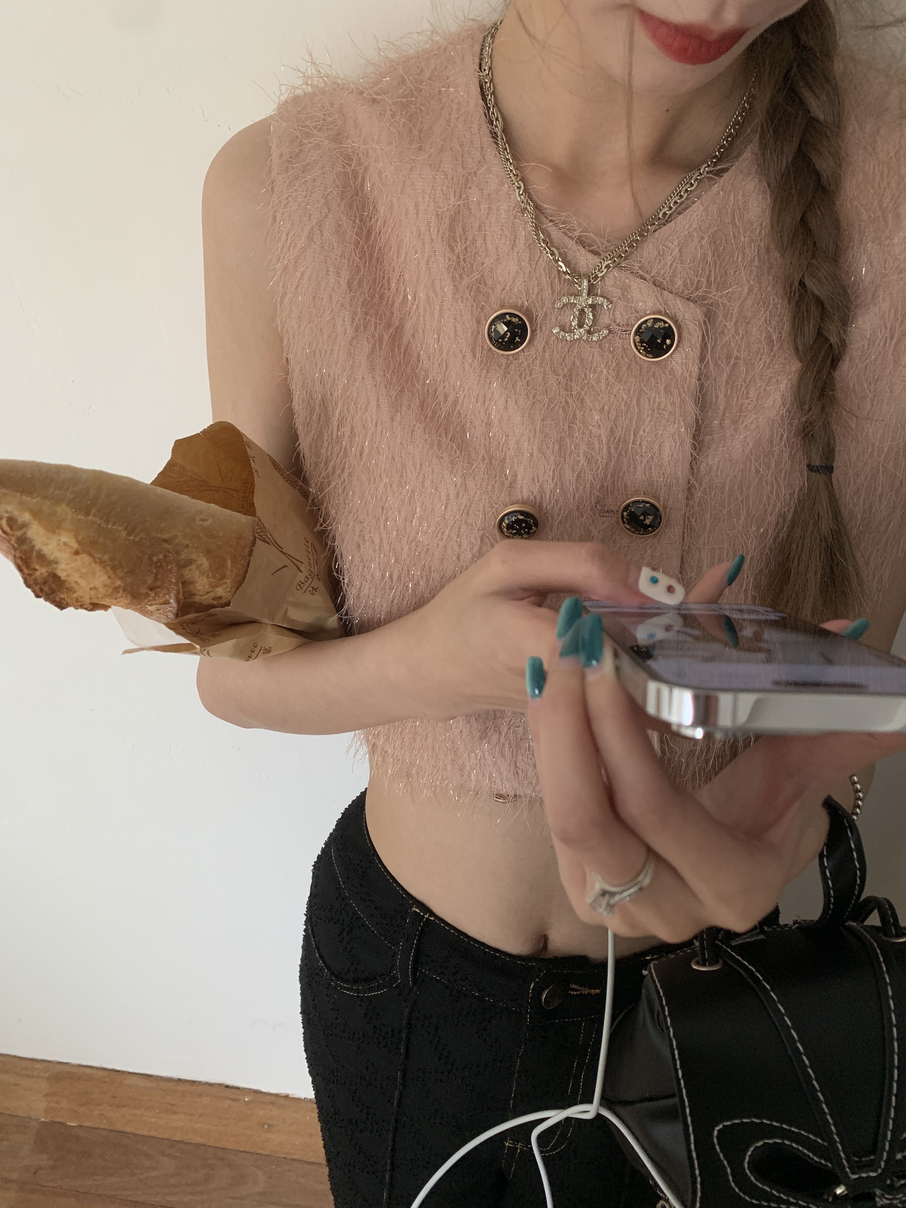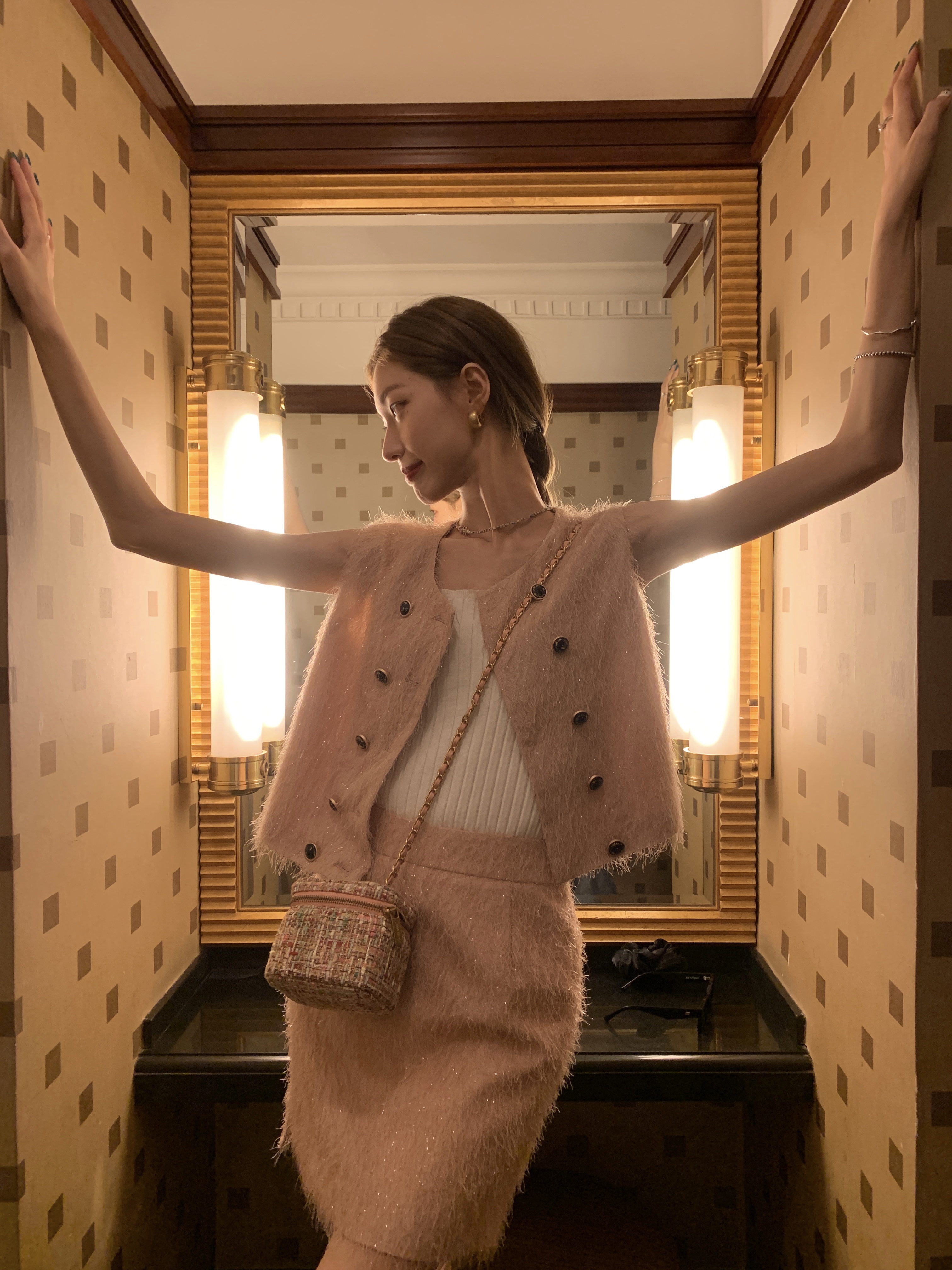 SourceWithU 微醺晚霞 流苏细闪裸粉热辣背心贵气半裙设计感套装