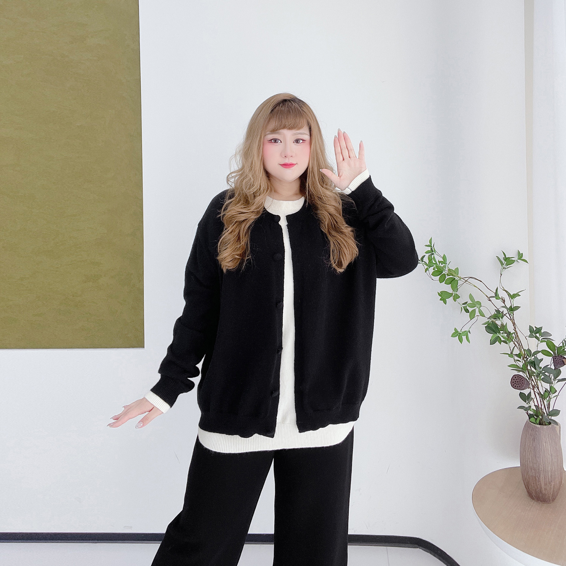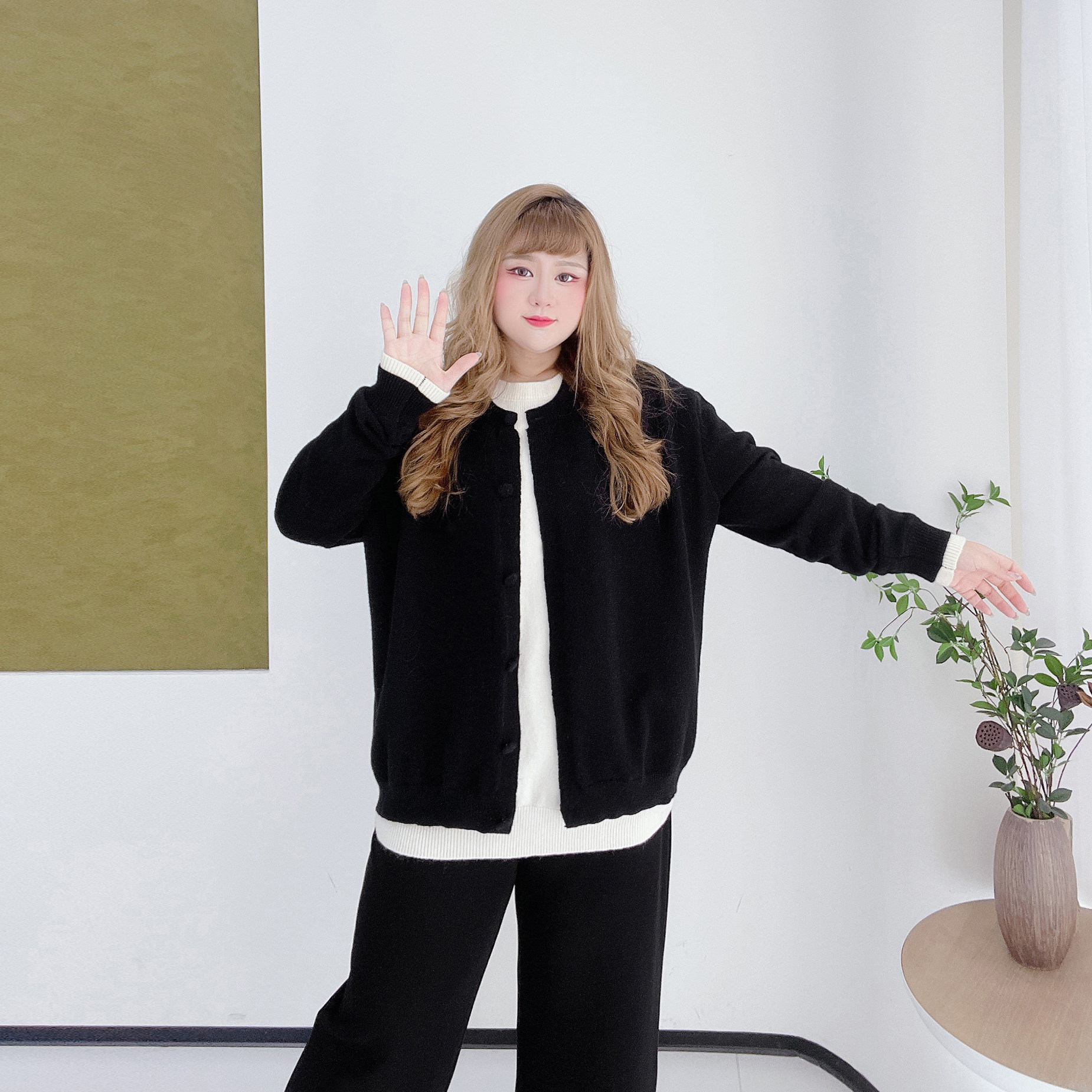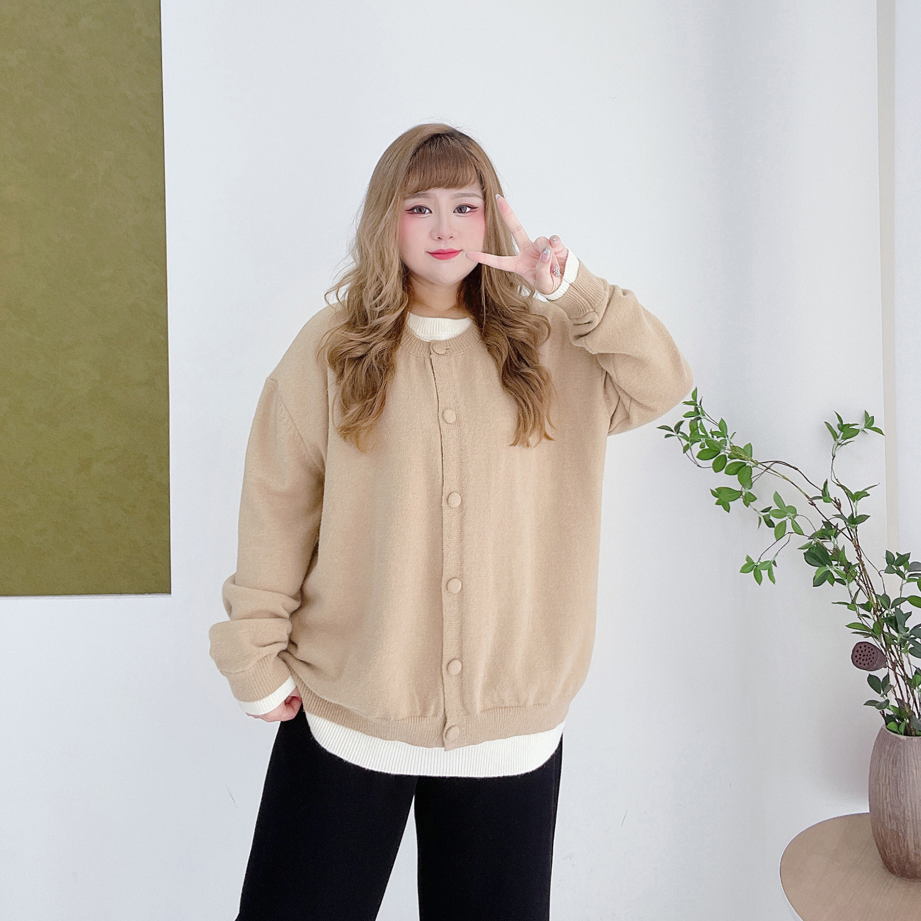 350斤显瘦高知穿搭气质软糯毛衣胖莹莹大码女装春季假两件针织衫