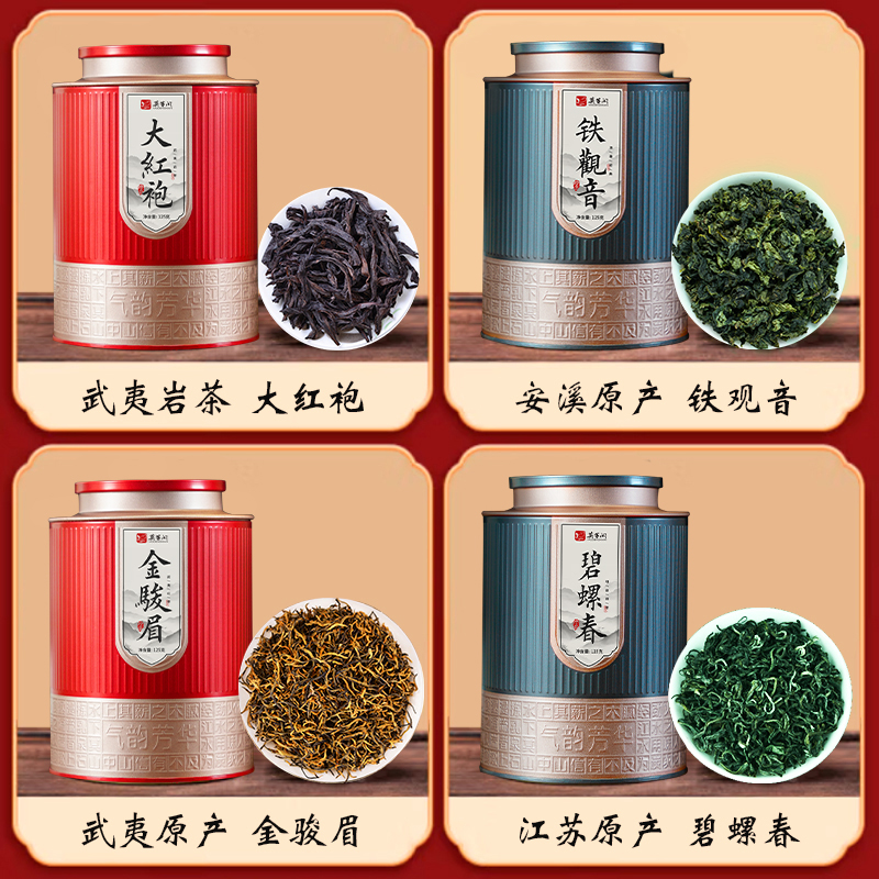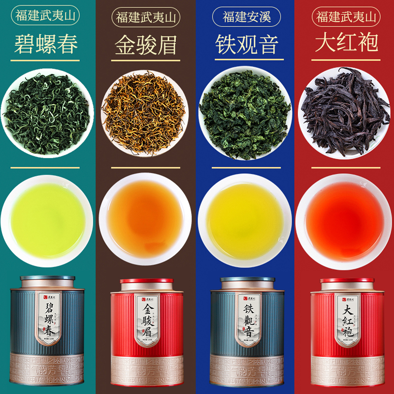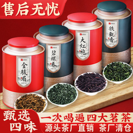 四大茗茶叶组合 大红袍金骏眉红茶 碧螺春绿茶铁观音自己喝送礼品