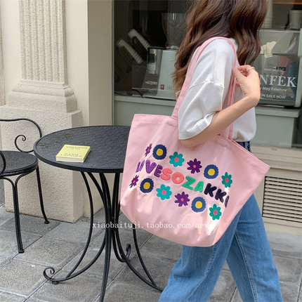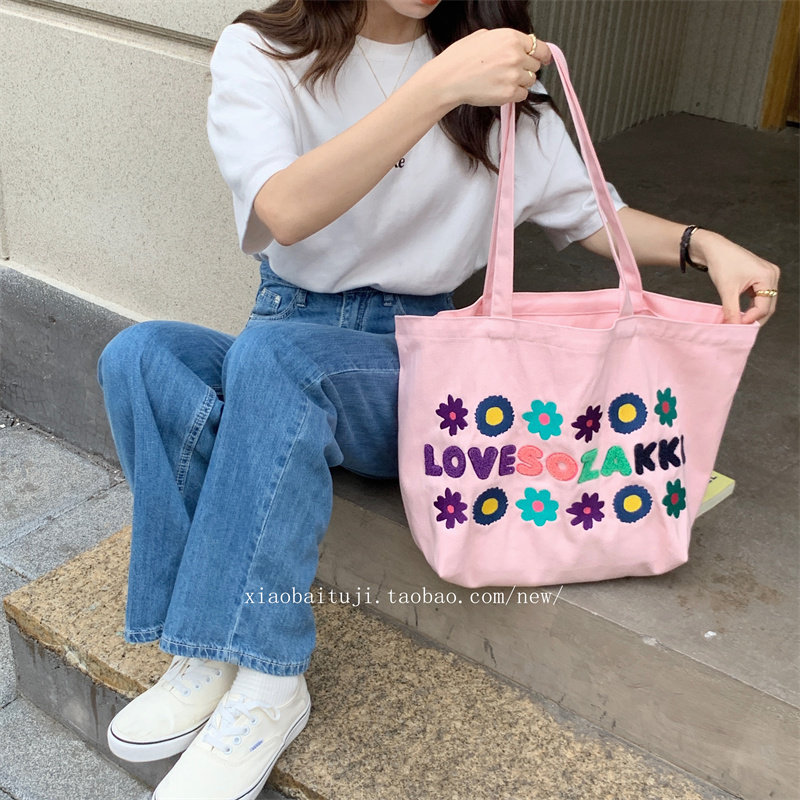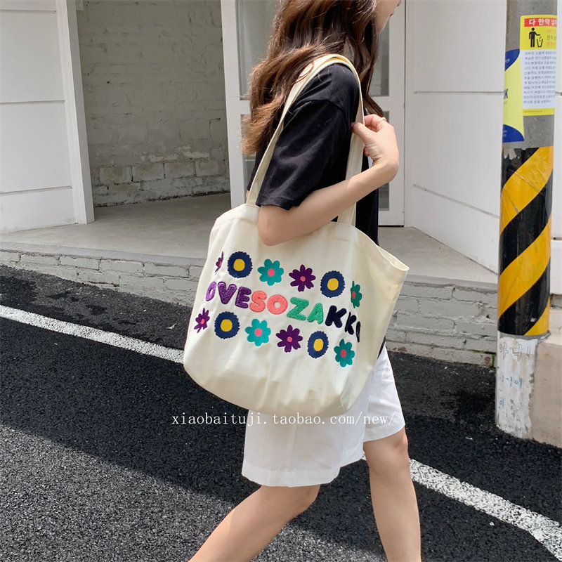 小白兔几 女刺绣花朵帆布包潮法式少女单肩腋下包大学生布袋逛街