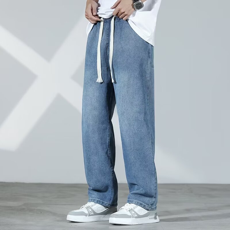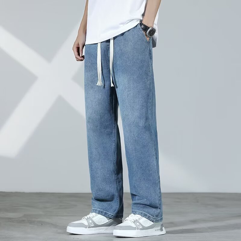 牛仔裤男款2025新款青少年直筒宽松春秋季薄款浅蓝色阔腿休闲裤子