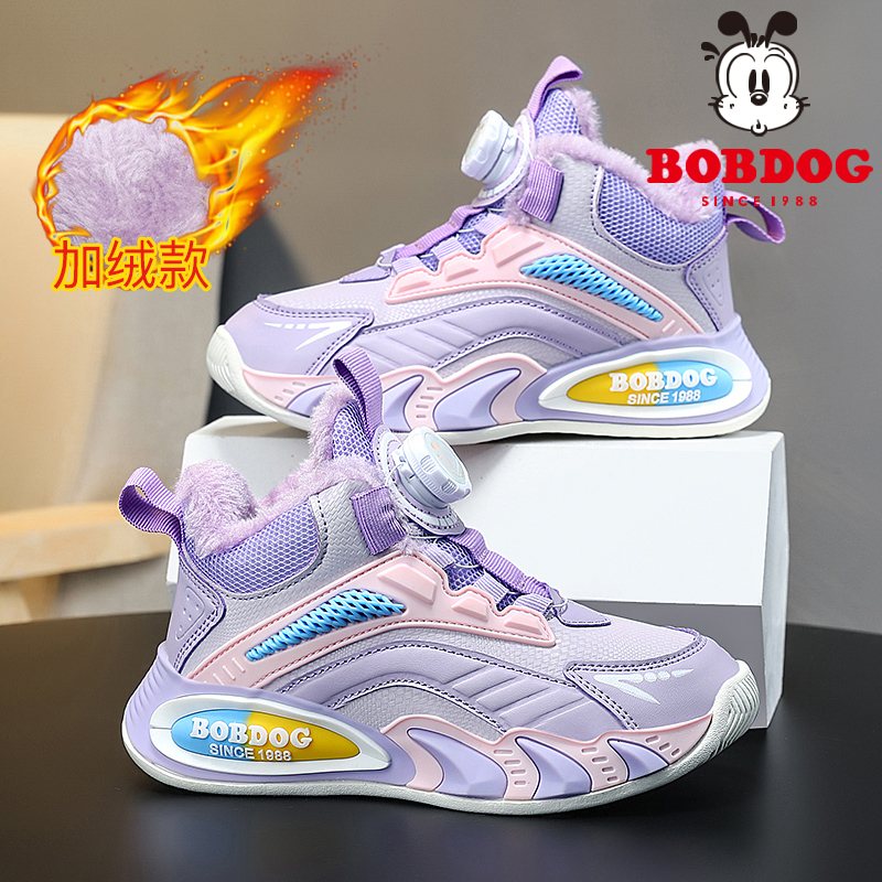 巴布豆童鞋男童棉鞋加绒加厚冬季儿童旋转纽扣大棉运动鞋篮球鞋子