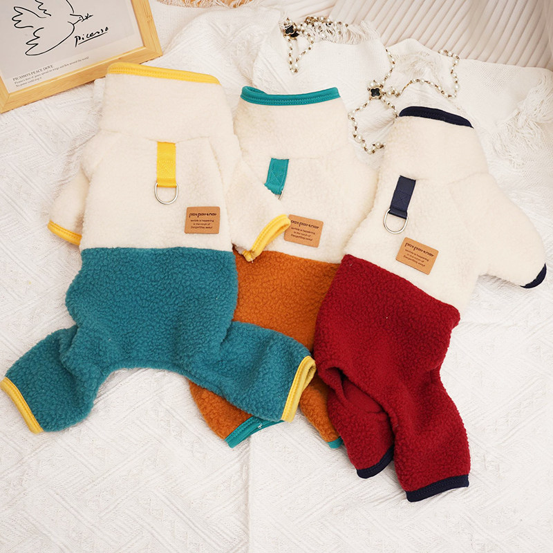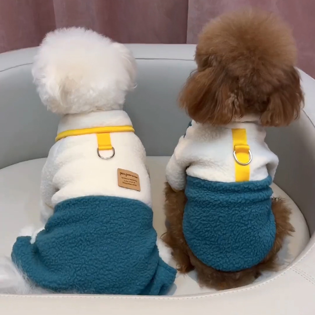 可牵引狗狗衣服秋冬款小型比熊泰迪博美幼犬冬季保暖羊羔绒四脚衣