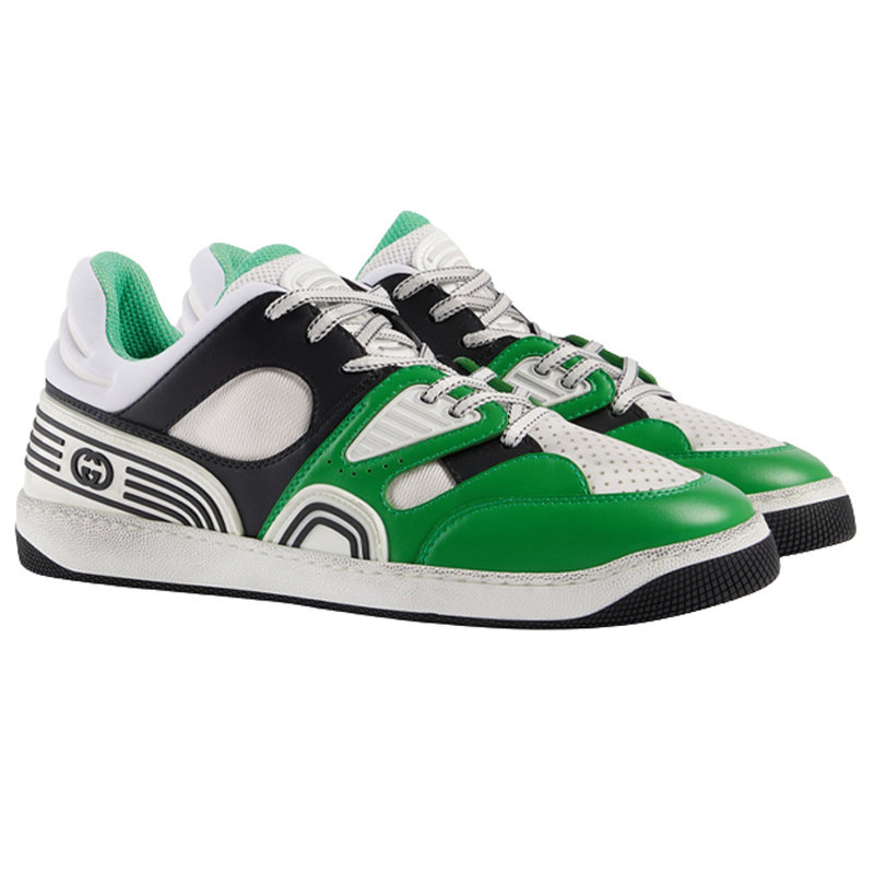 Gucci/古驰Basket 织物时尚系带低帮板鞋男款绿白黑