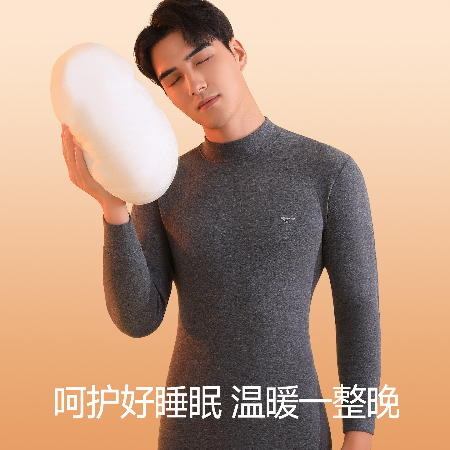 七匹狼保暖内衣男士纯棉冬季中领打底全棉棉毛衫秋衣秋裤套装男款