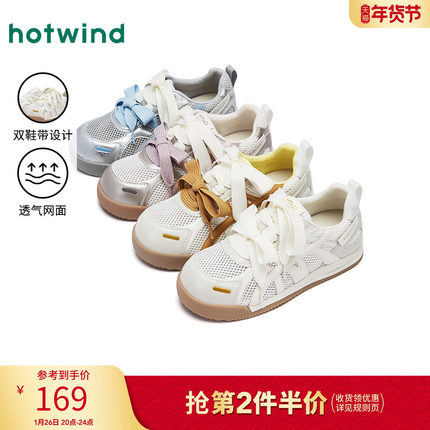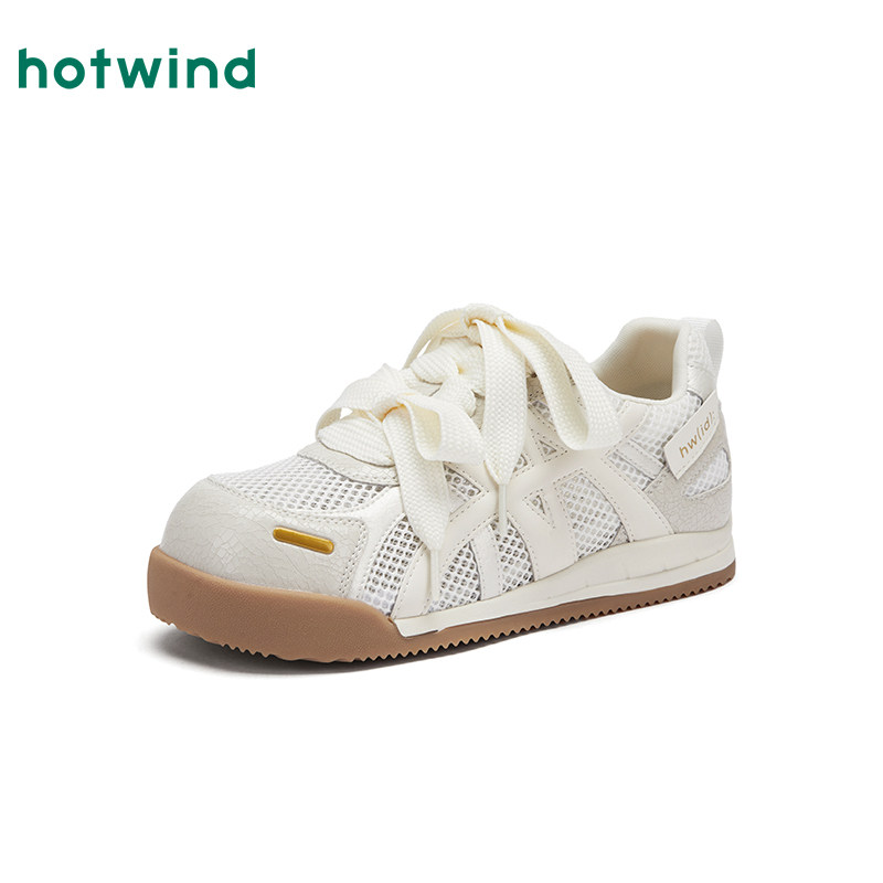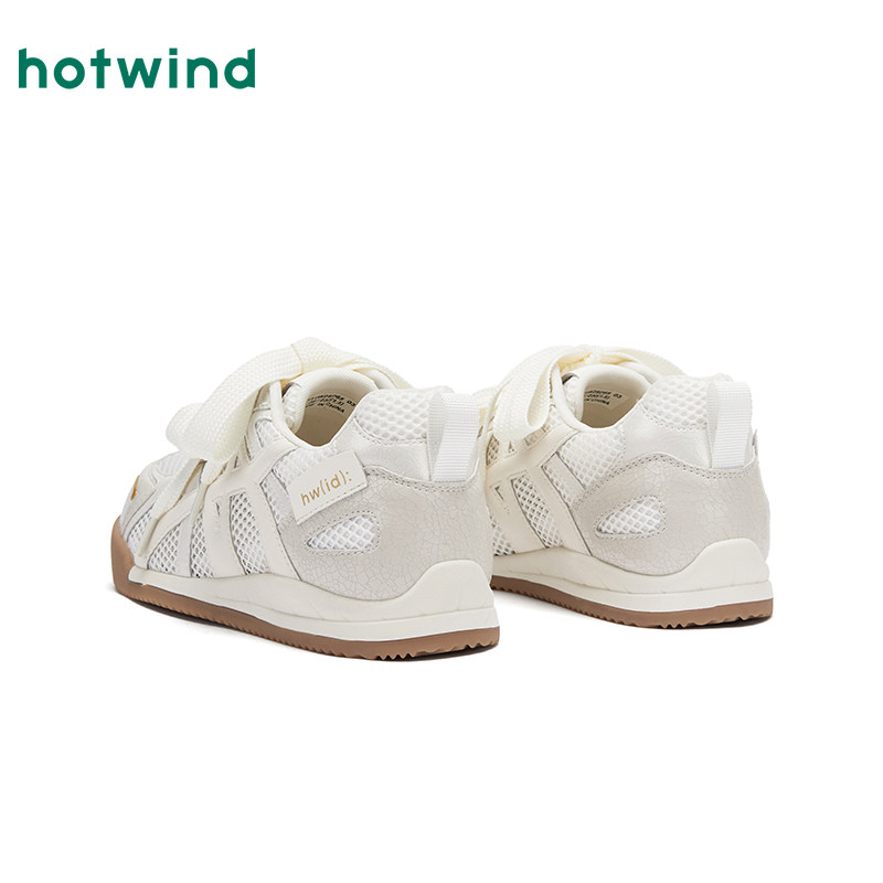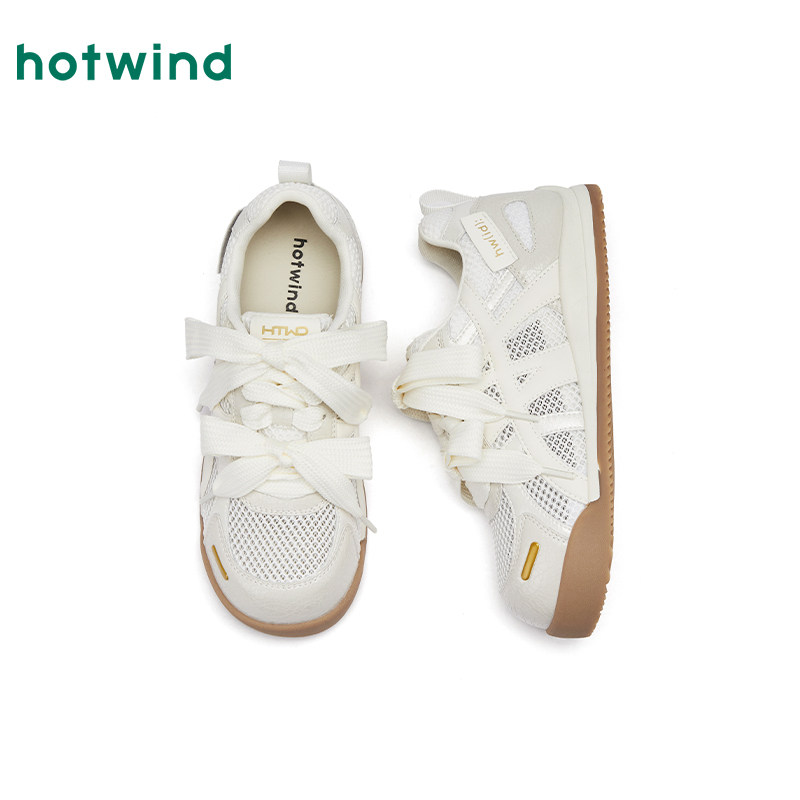 热风厚底休闲鞋女款2025年春季新款网面透气小白鞋百搭运动女鞋子