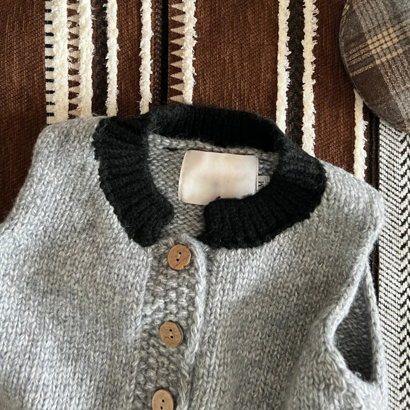 男女童叠穿外搭针织背心马夹24秋冬新款小宝宝韩版撞色圆领毛衣