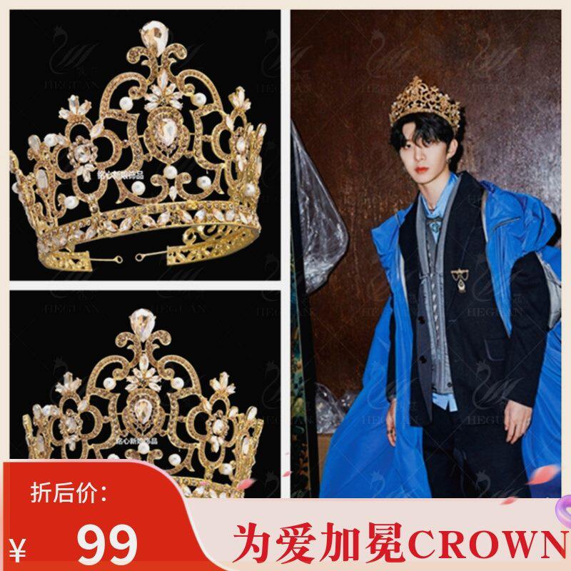 范丞丞款大气国王皇冠王子金色王冠男士选美女王男女通用皇冠可调