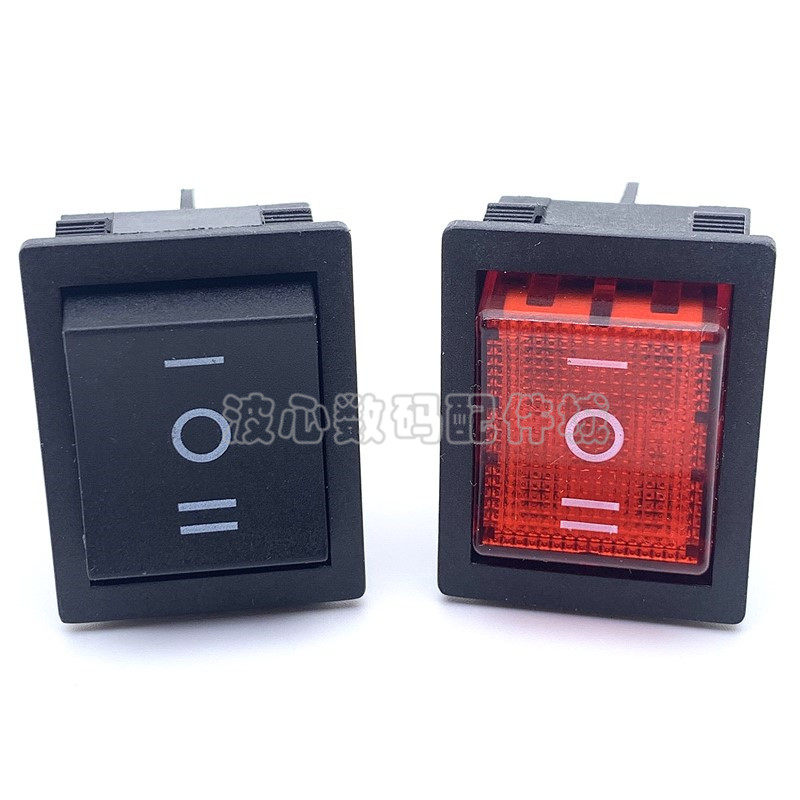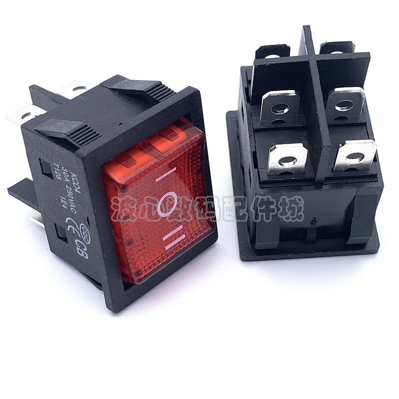 KCD4船型开关 30A大电流大功率电源翘板开关 6脚3档黑色 红灯250V