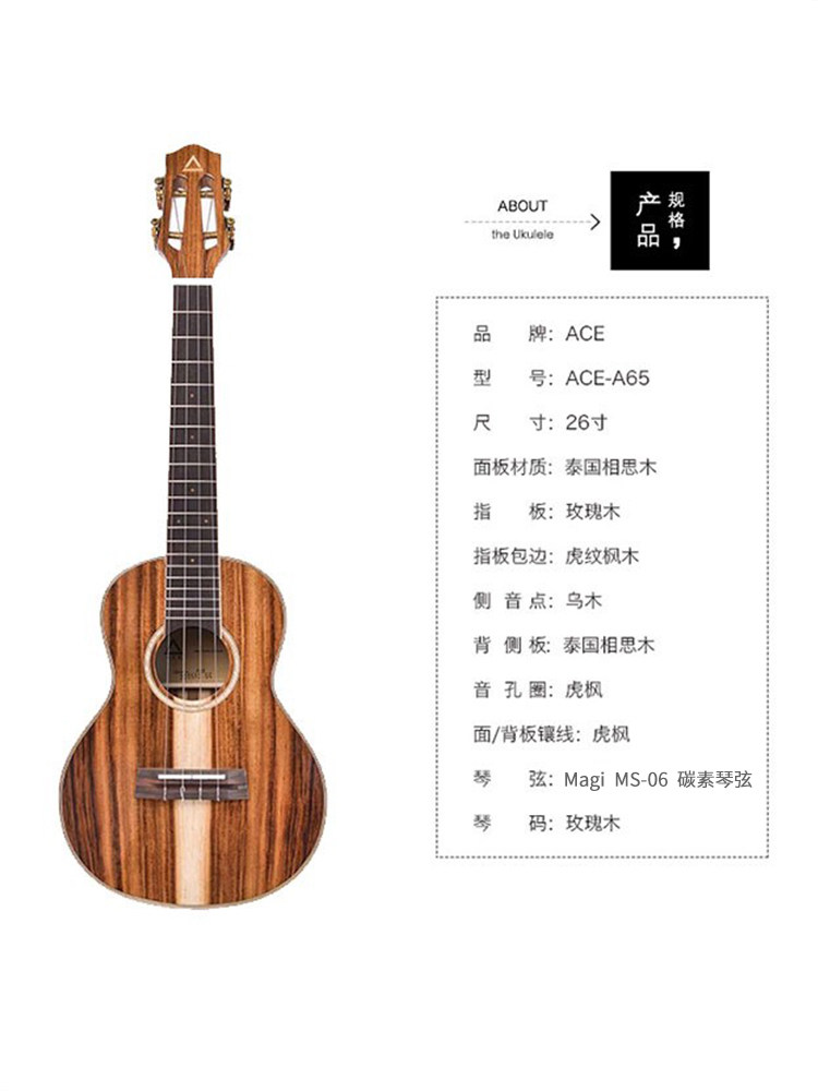 趣弹乐器A65泰国相思木全单ACE进阶23寸26寸乌克丽丽尤克里里吉他