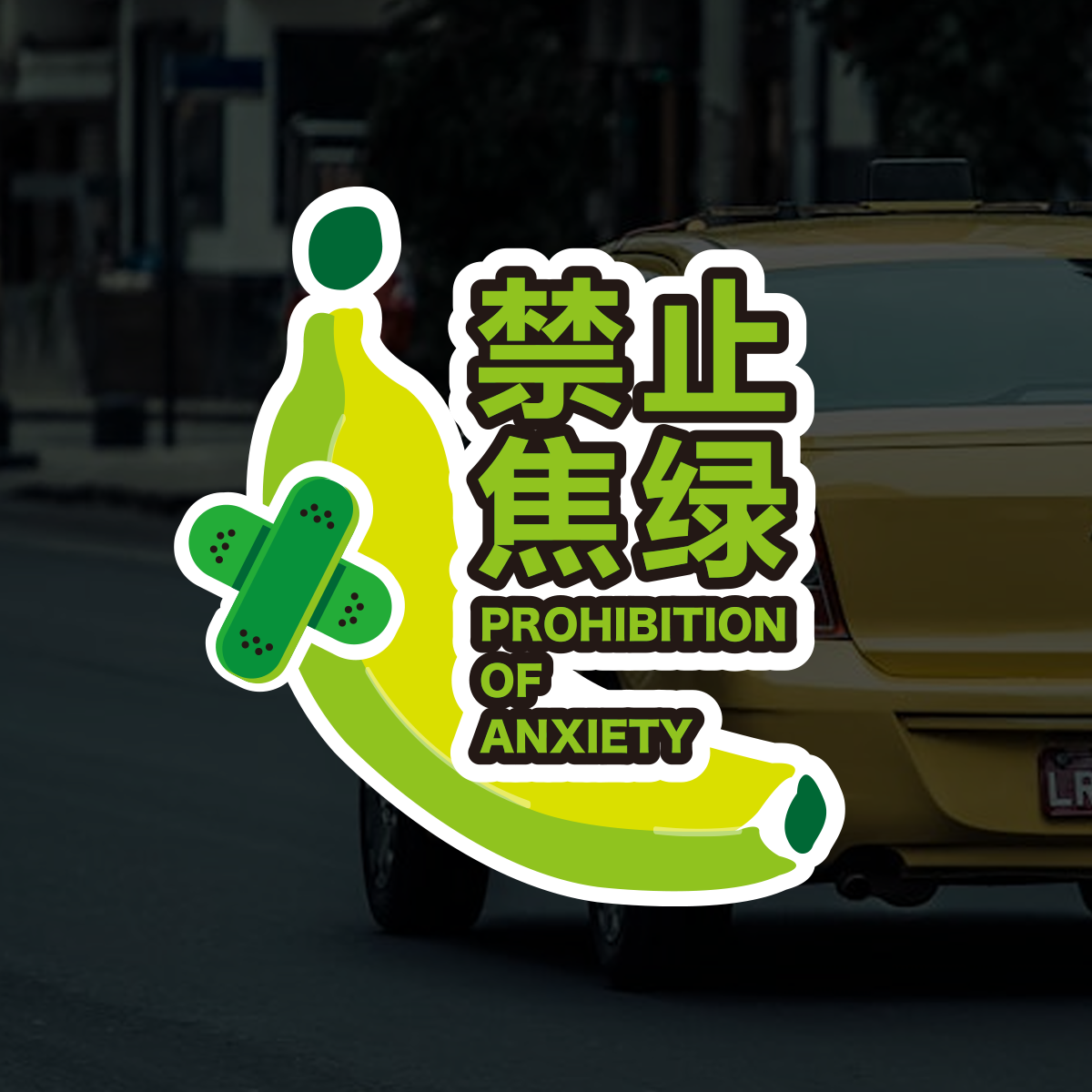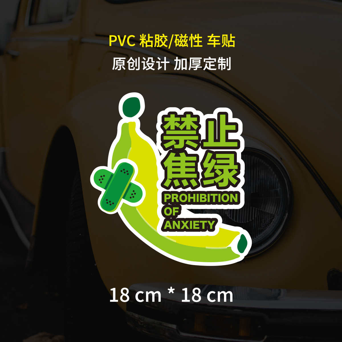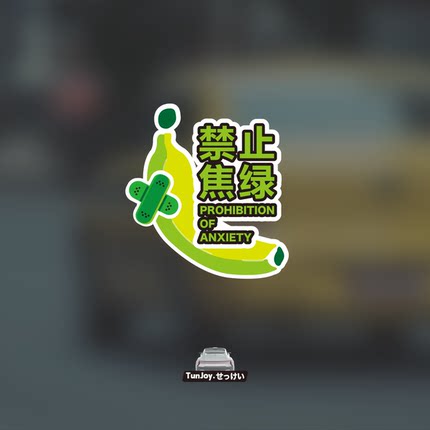 创意香蕉禁止焦虑原创焦绿车贴纸新能源绿色贴纸潮流磁吸反光车贴