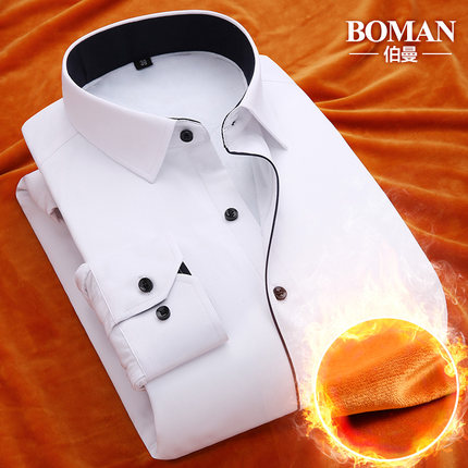男士加绒加厚长袖保暖衬衫商务休闲修身白色工装有加肥加大码衬衣