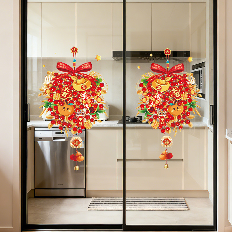 2026马年新款元旦过年福字新年玻璃门贴橱窗静电装饰贴纸春节窗花