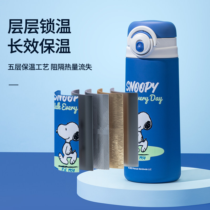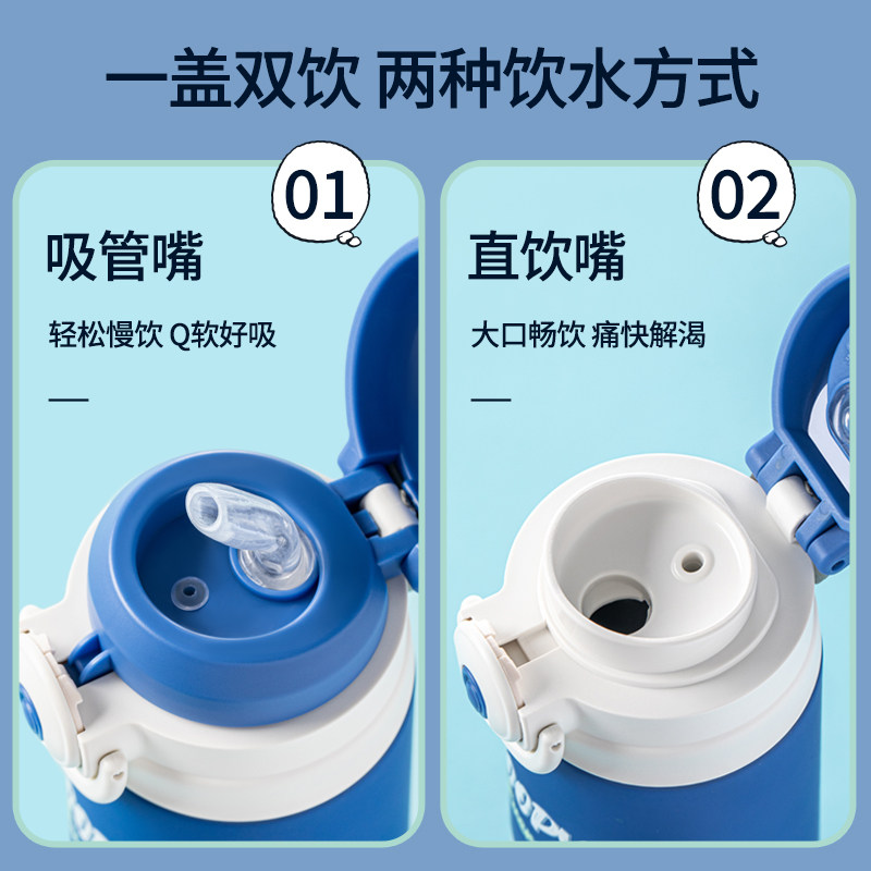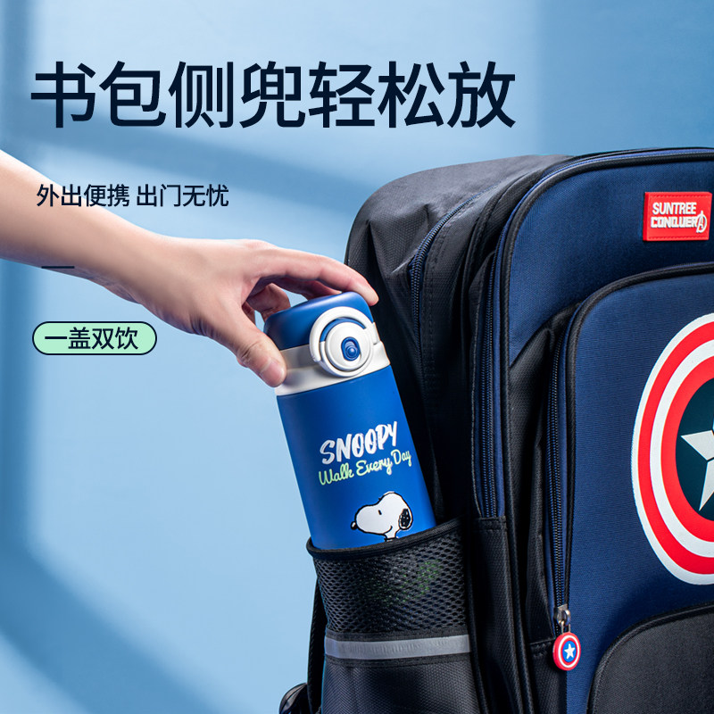 史努比儿童保温杯食品级男孩双饮口水杯子小学生上学专用吸管水壶