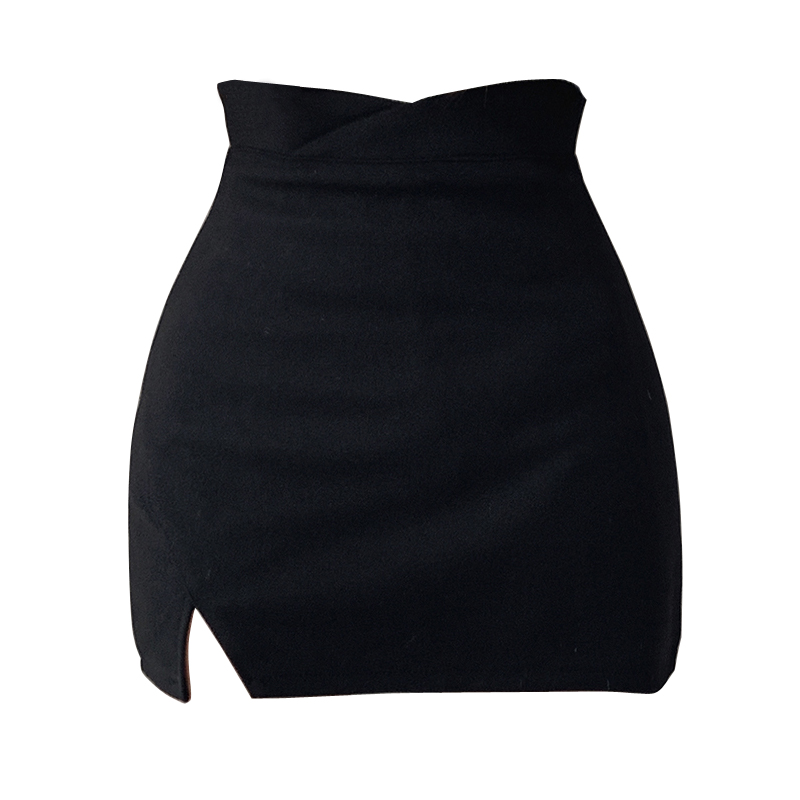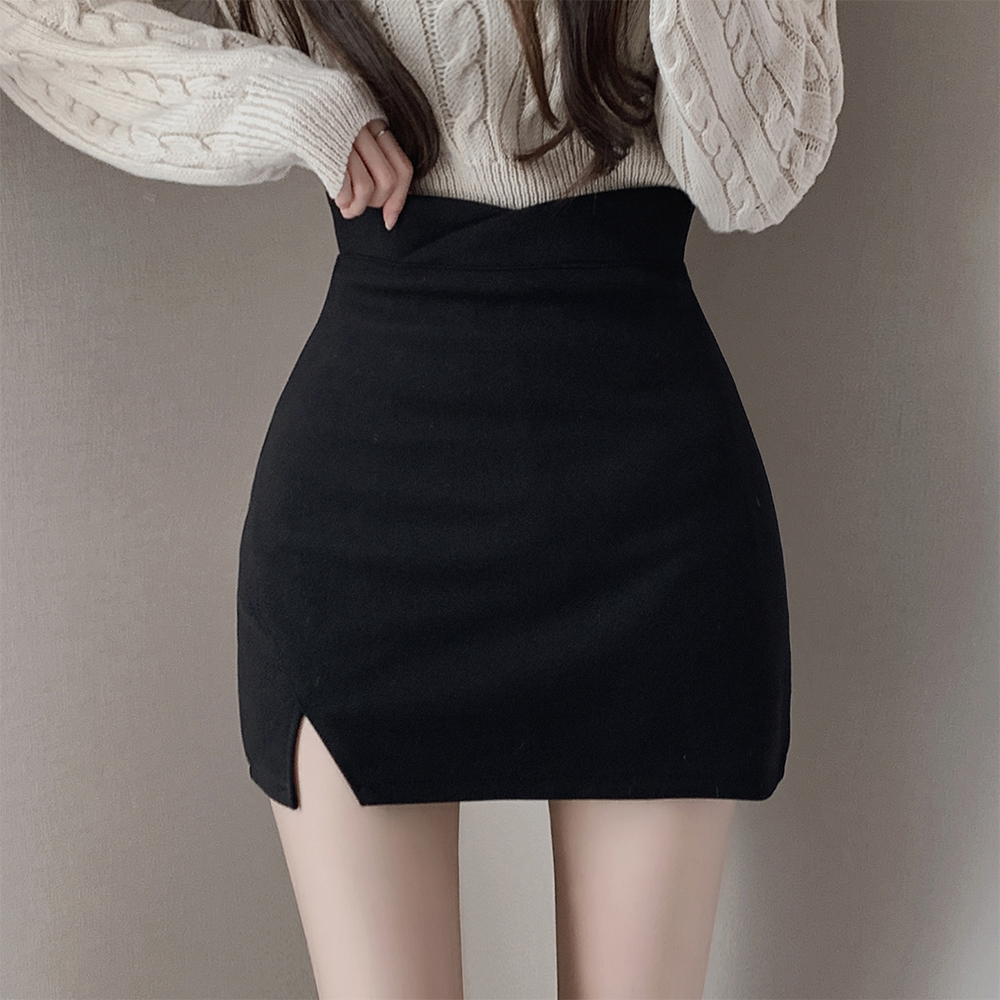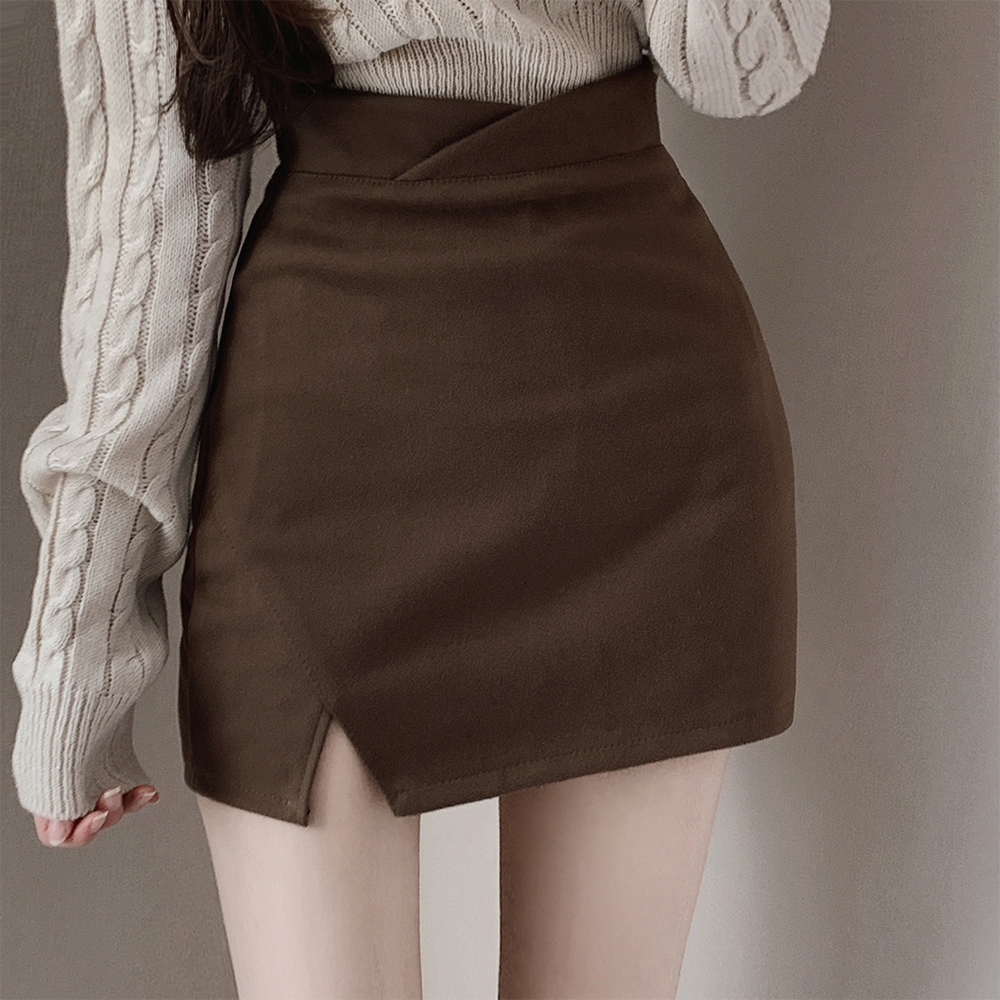 秋冬短裙女毛呢半身裙2025新款棕色开叉包臀裙显瘦紧身高腰一步裙