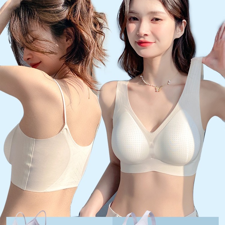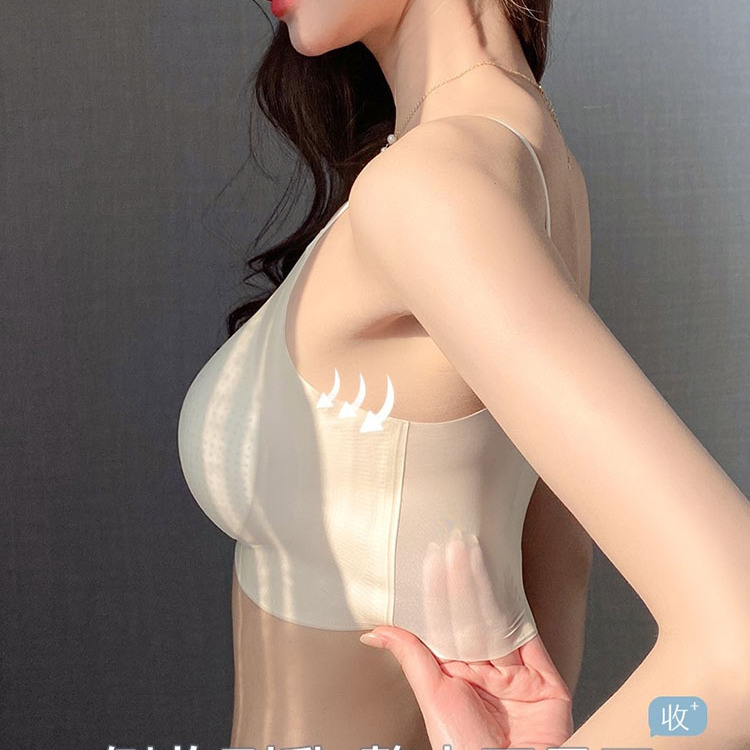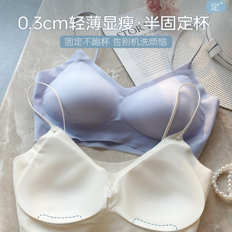 维多利亚超薄大胸显小内衣女夏季冰丝美背吊带细肩带背心式文胸罩