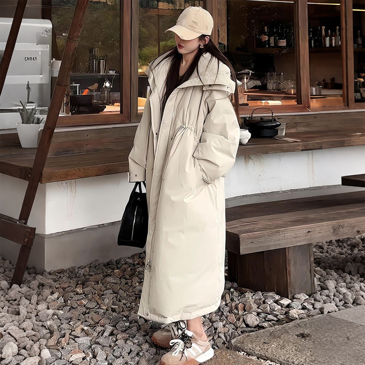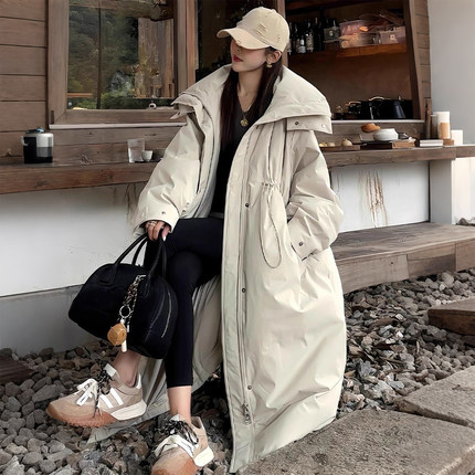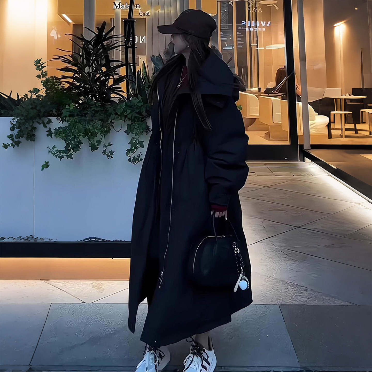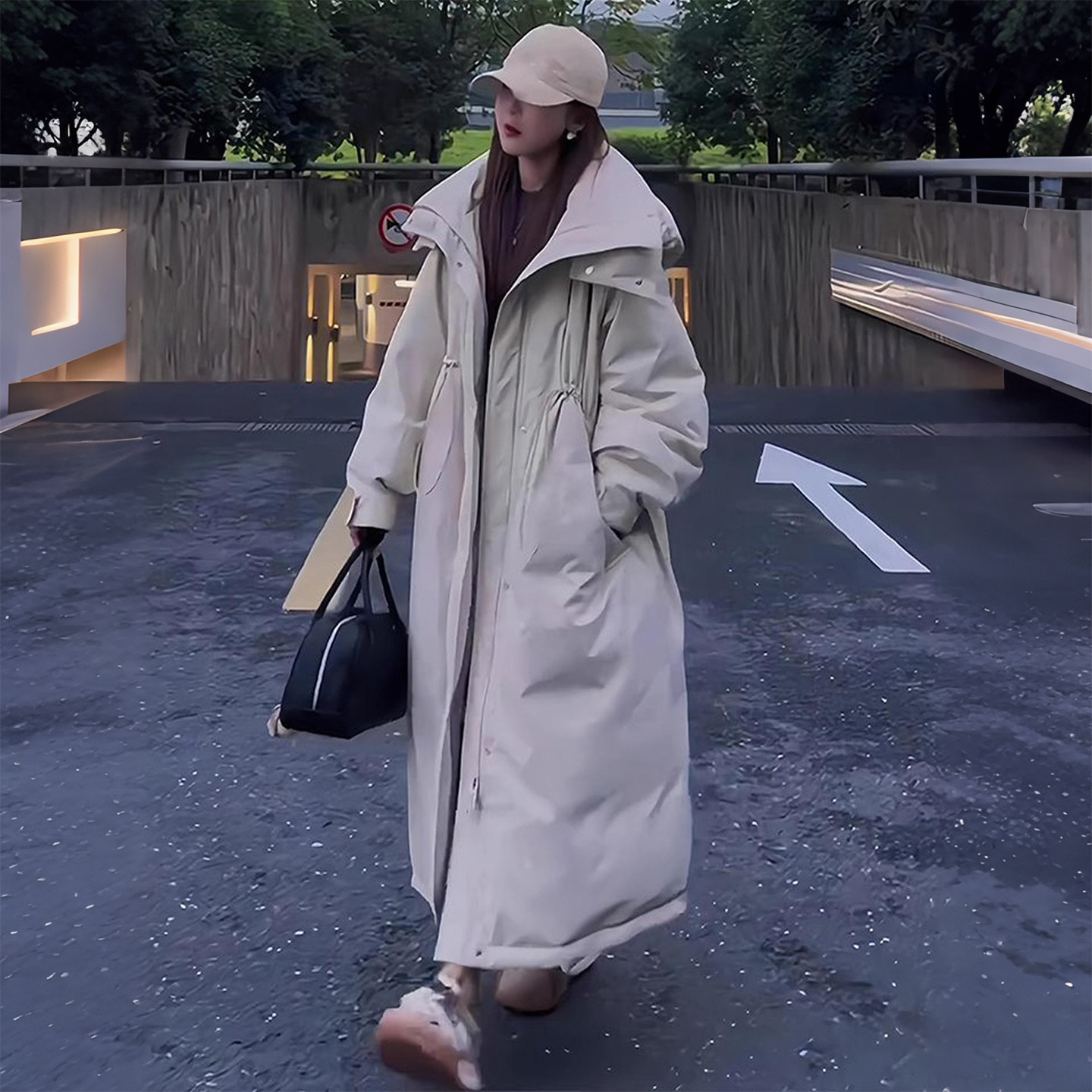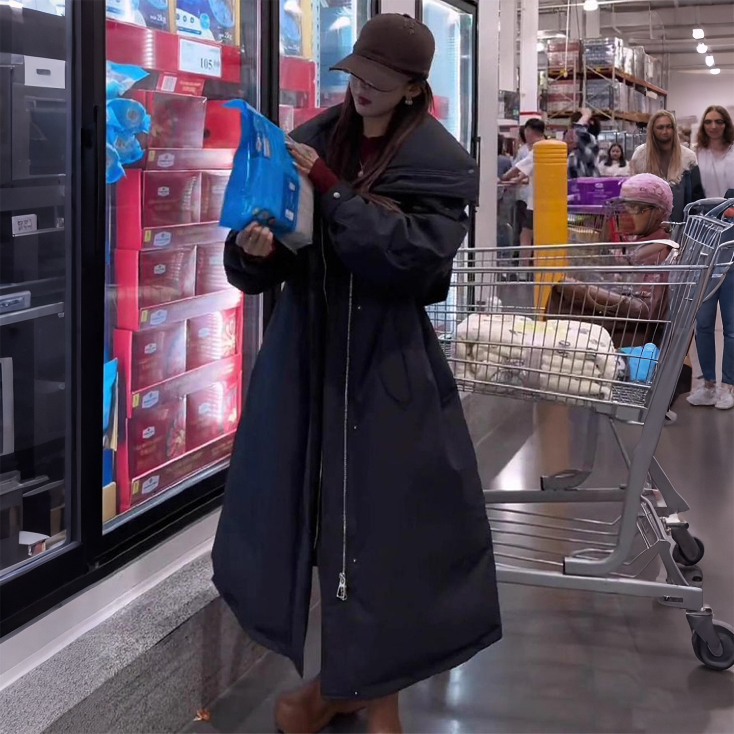 特大码女装收腰显瘦长款棉服外套女冬季新款宽松加厚保暖连帽棉衣