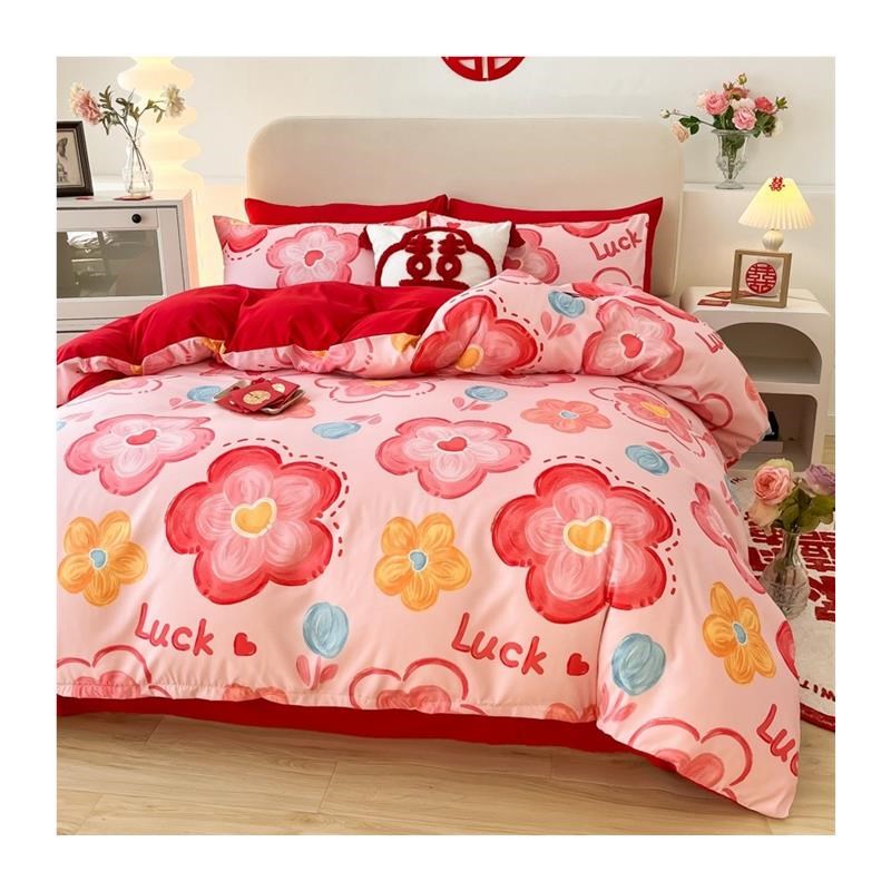 结婚床上用品四件套简约婚庆全棉红色床单被套新婚房喜被