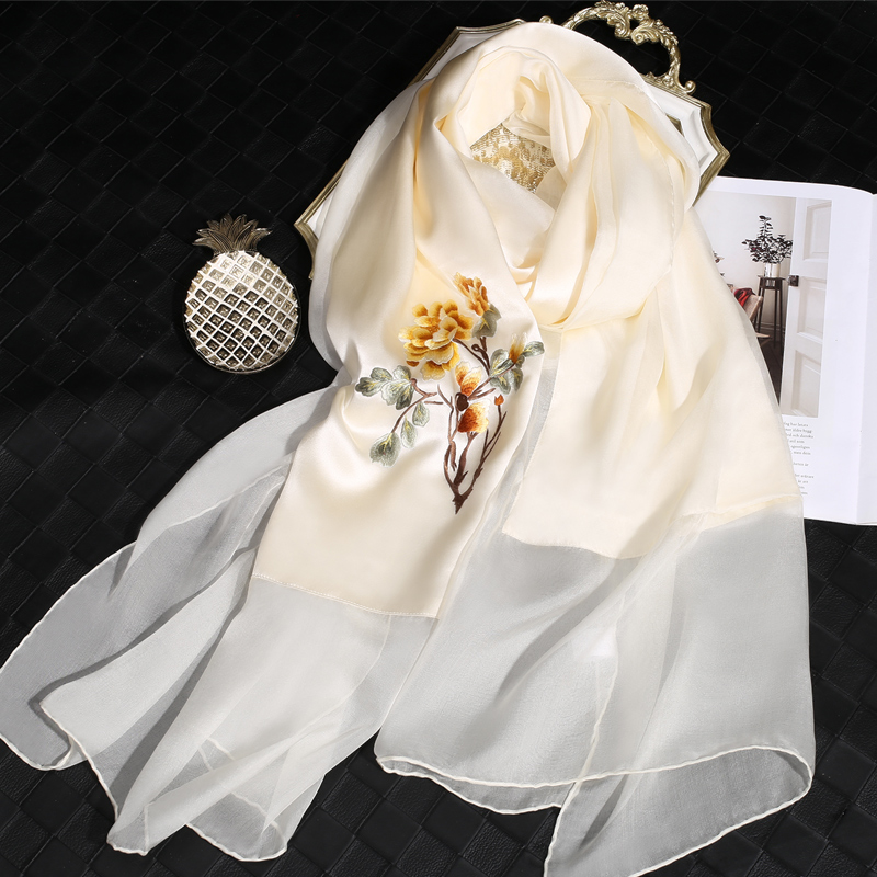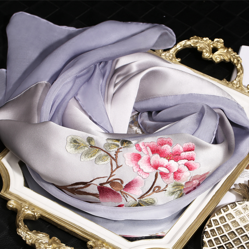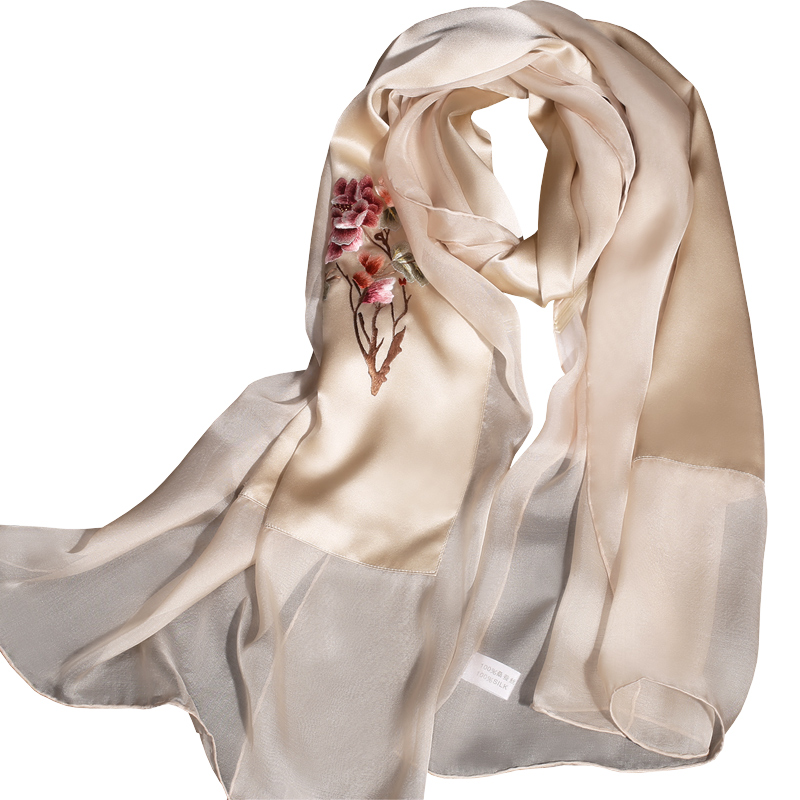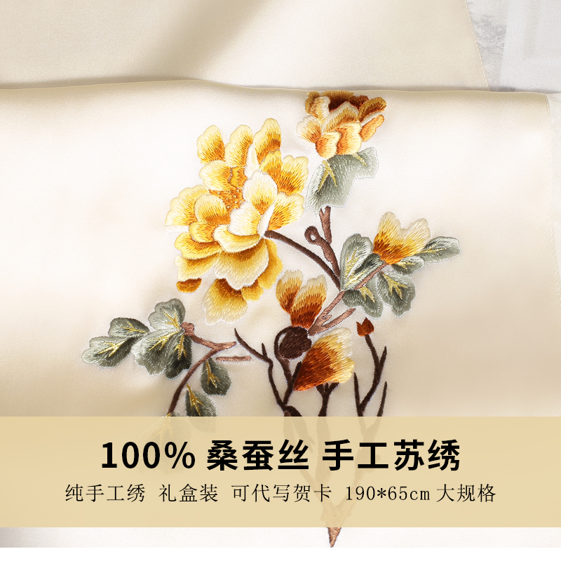 吴蚕里苏绣围巾女春秋真丝桑蚕丝披肩外搭纱巾妈妈款时尚纯色丝巾