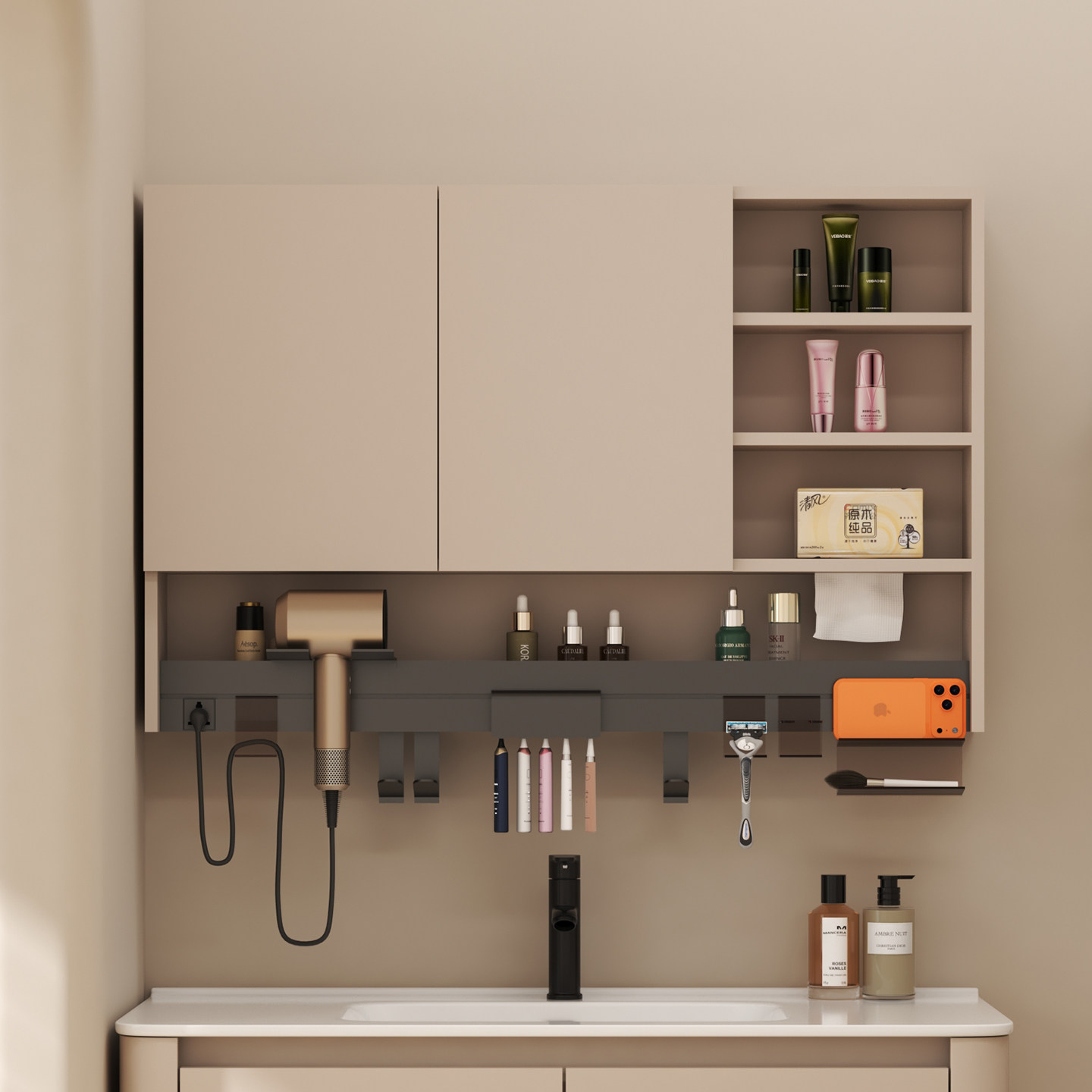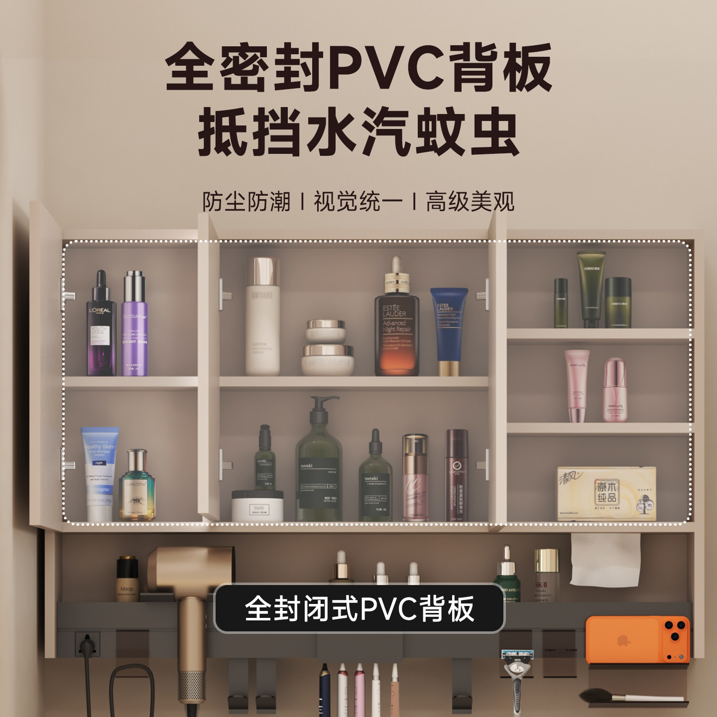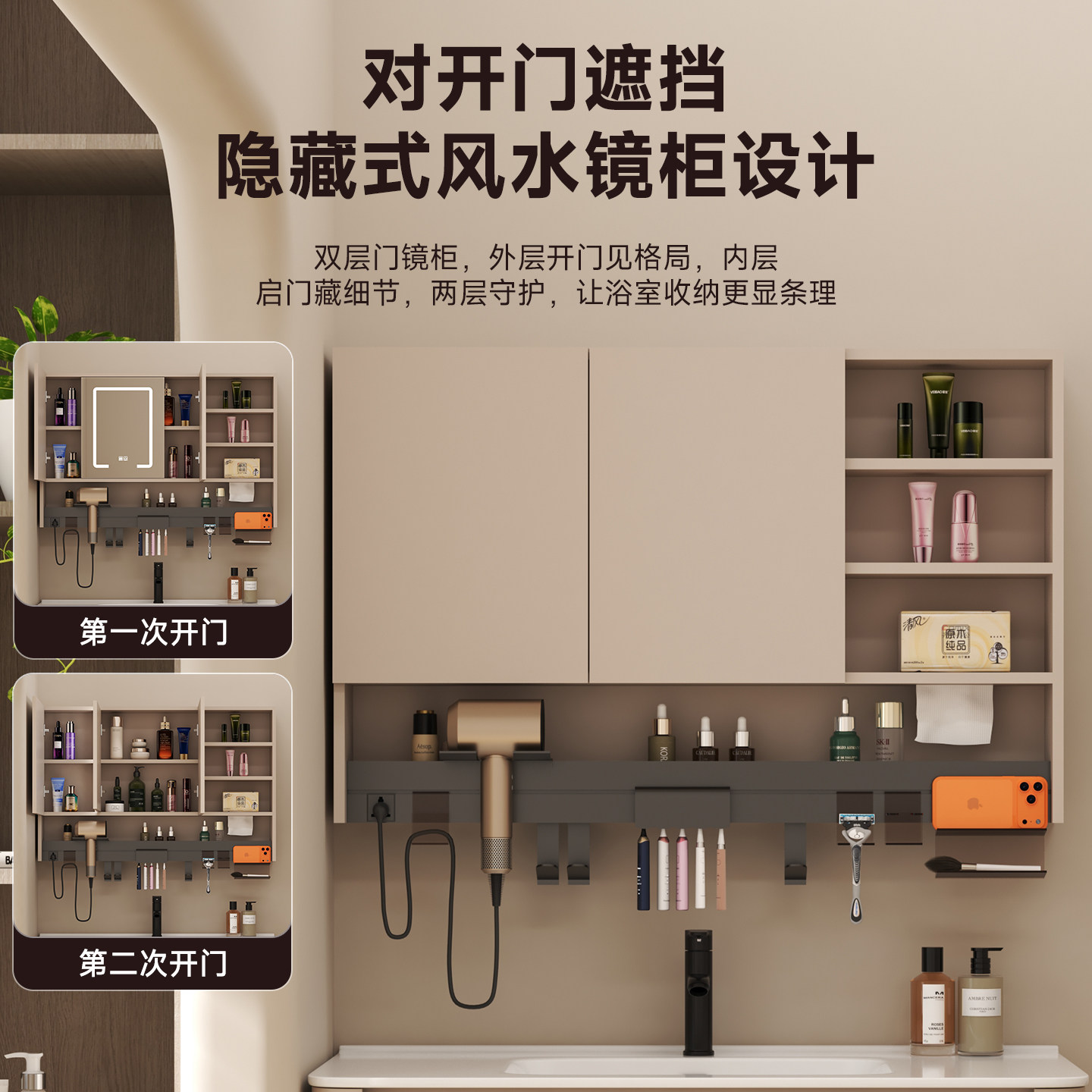 隐藏式风水浴室镜柜多功能置物架