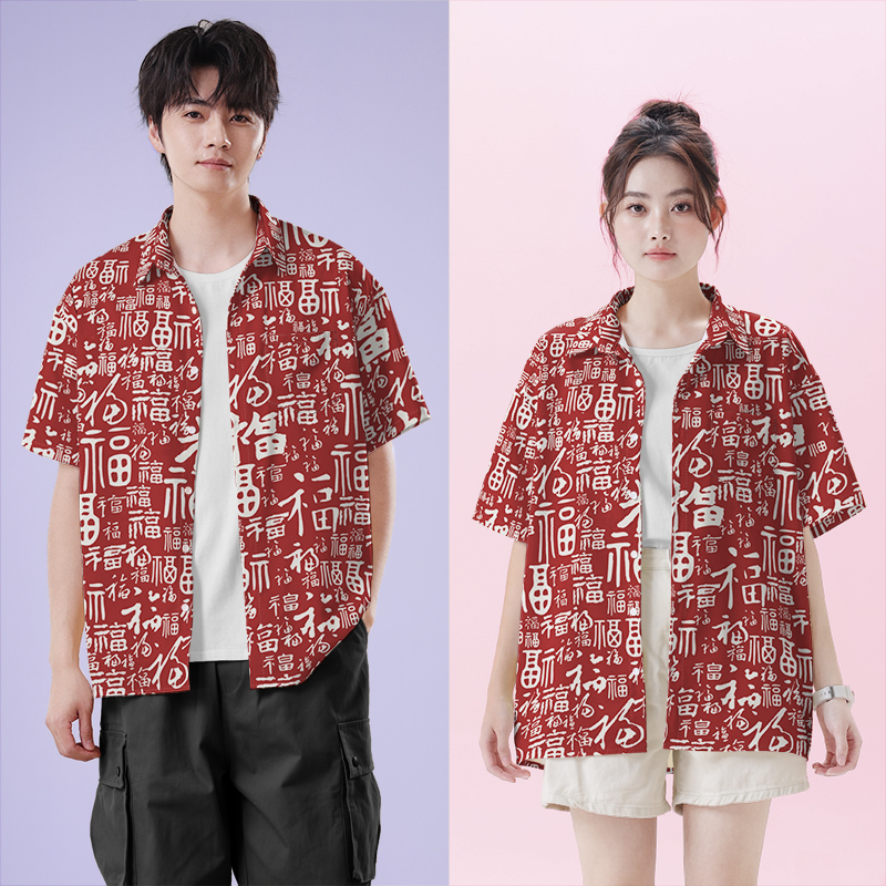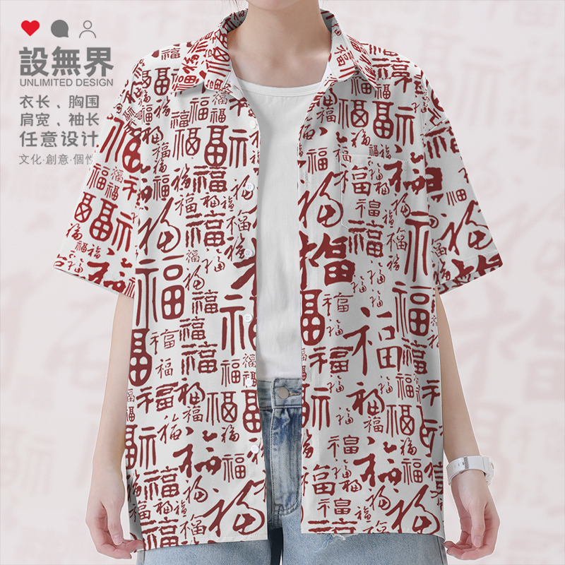 百福图祝福书法汉字中国传统文化短袖衬衫男女花衬衣0014设 无界